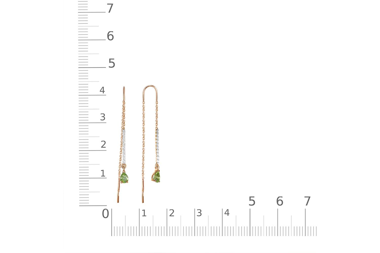 Мастера компании NEWGOLD, приложив всё свое мастерство и искусство, создали для Вас на нашем собственном производстве Серьги-продёвки Дорожки из красного золота с 2 хризолитами и 20 фианитами.