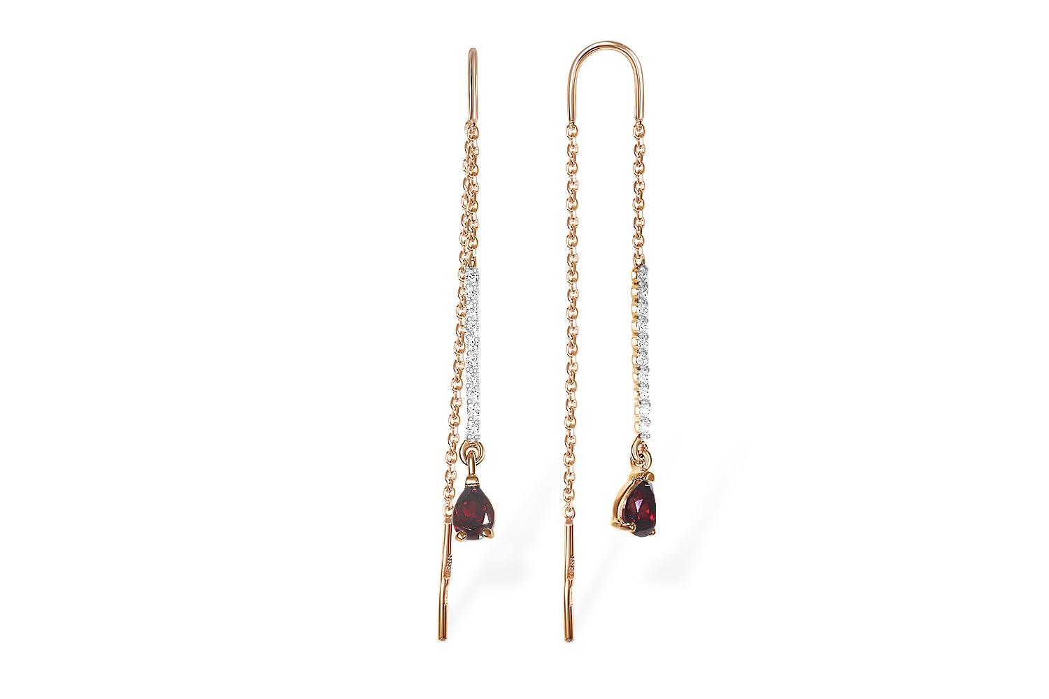 Закажите Серьги-продёвки Дорожки из красного золота с 2 гранатами и 20 фианитами с получением в Москве через курьерскую службу доставки напрямую с нашего производственного склада завода NEWGOLD!