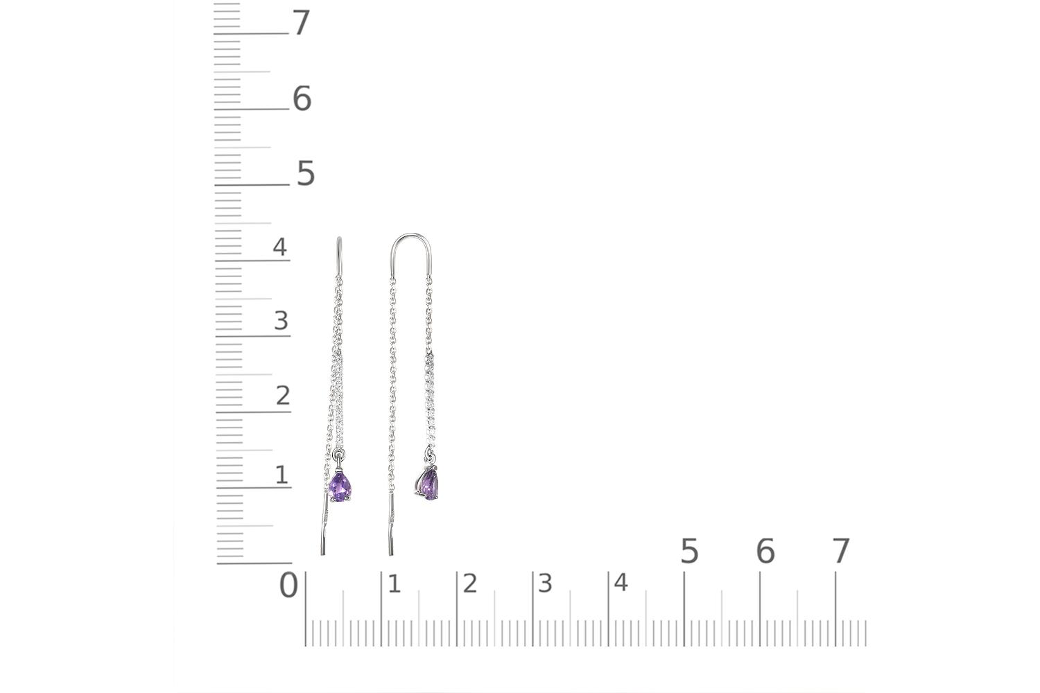 Мастера компании NEWGOLD, приложив всё свое мастерство и искусство, создали для Вас на нашем собственном производстве Серьги-продёвки Дорожки из белого золота с 2 аметистами и 20 фианитами.