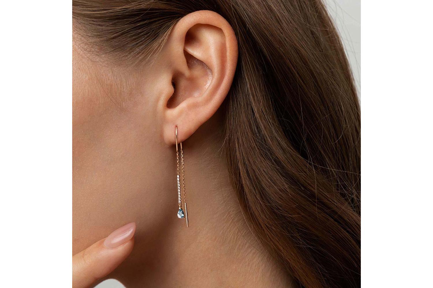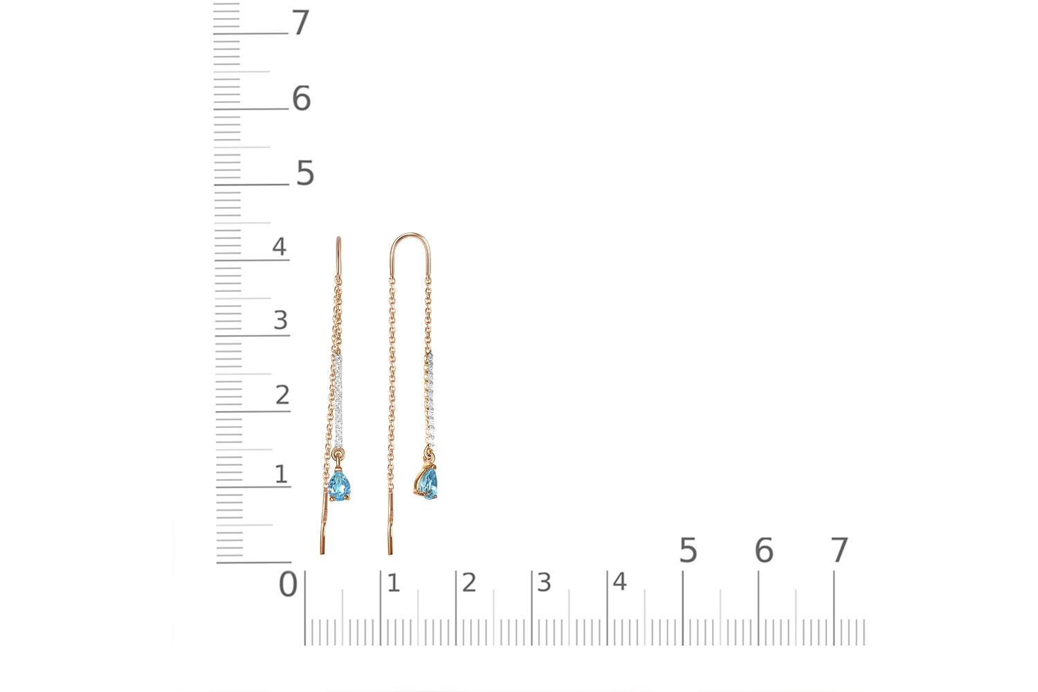 Закажите Серьги-продёвки Дорожки из красного золота с 2 топазами swiss и 20 фианитами с получением в Москве через курьерскую службу доставки напрямую с нашего производственного склада завода NEWGOLD!