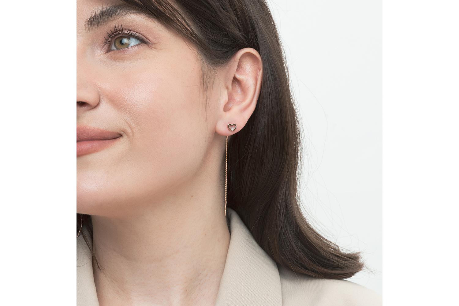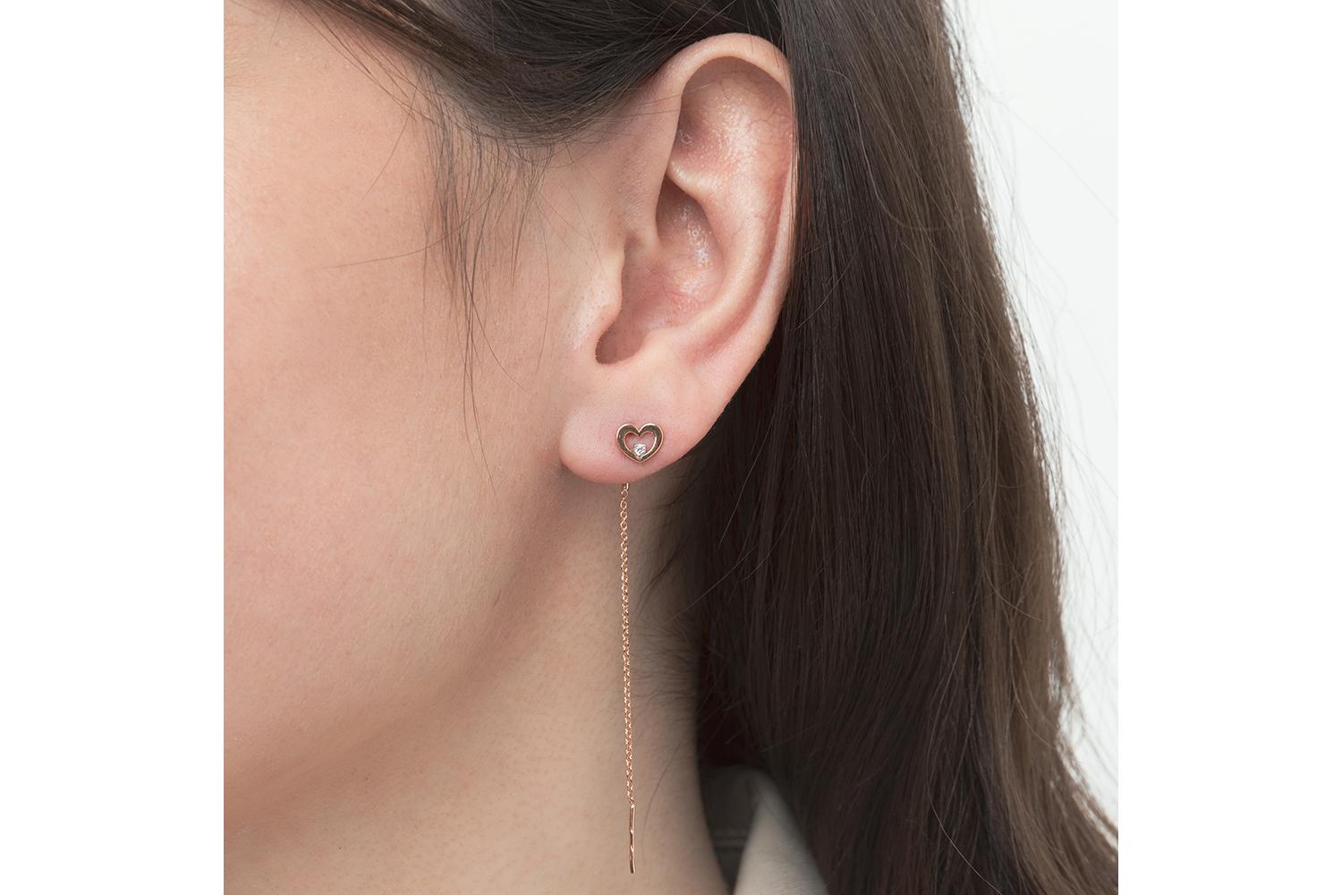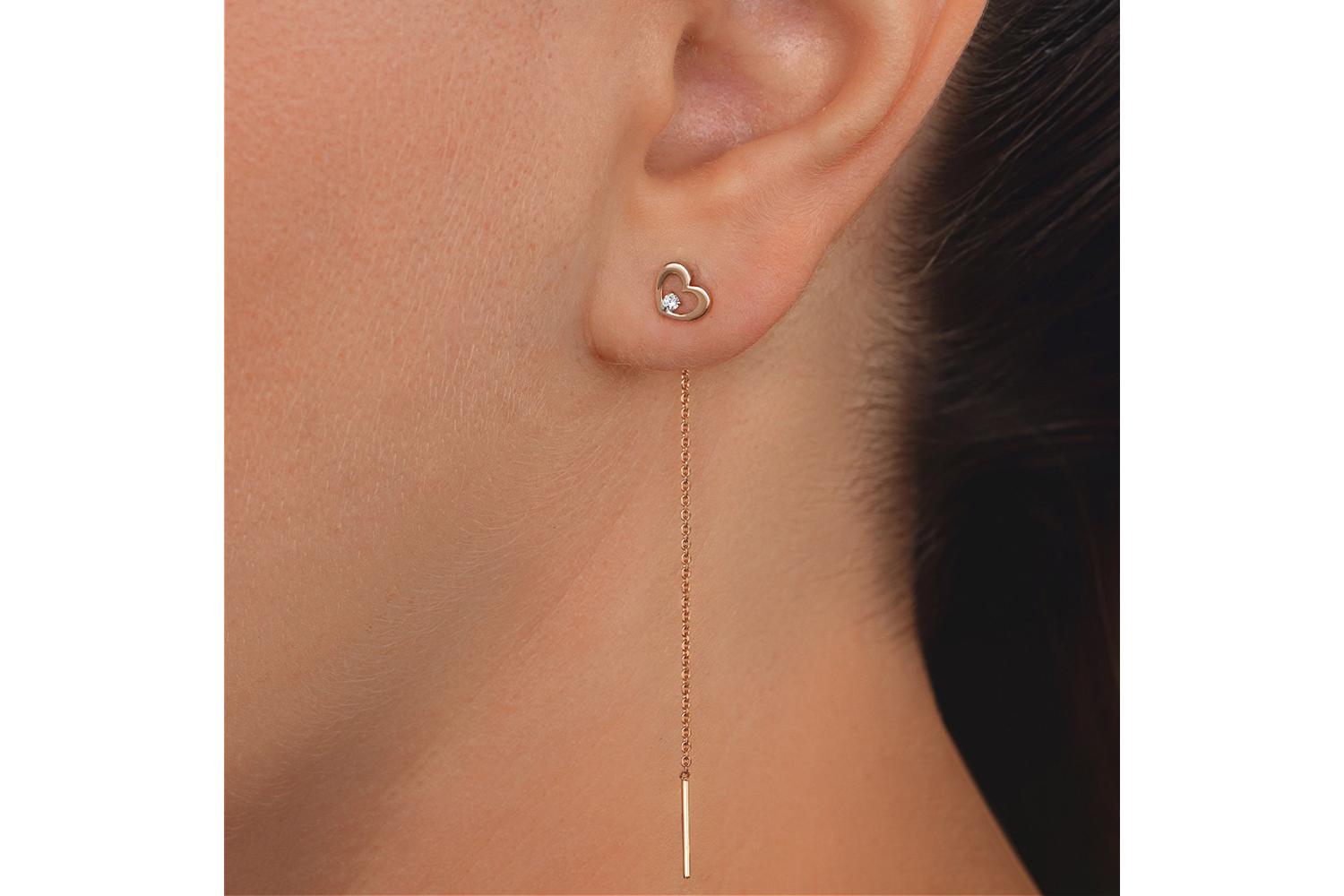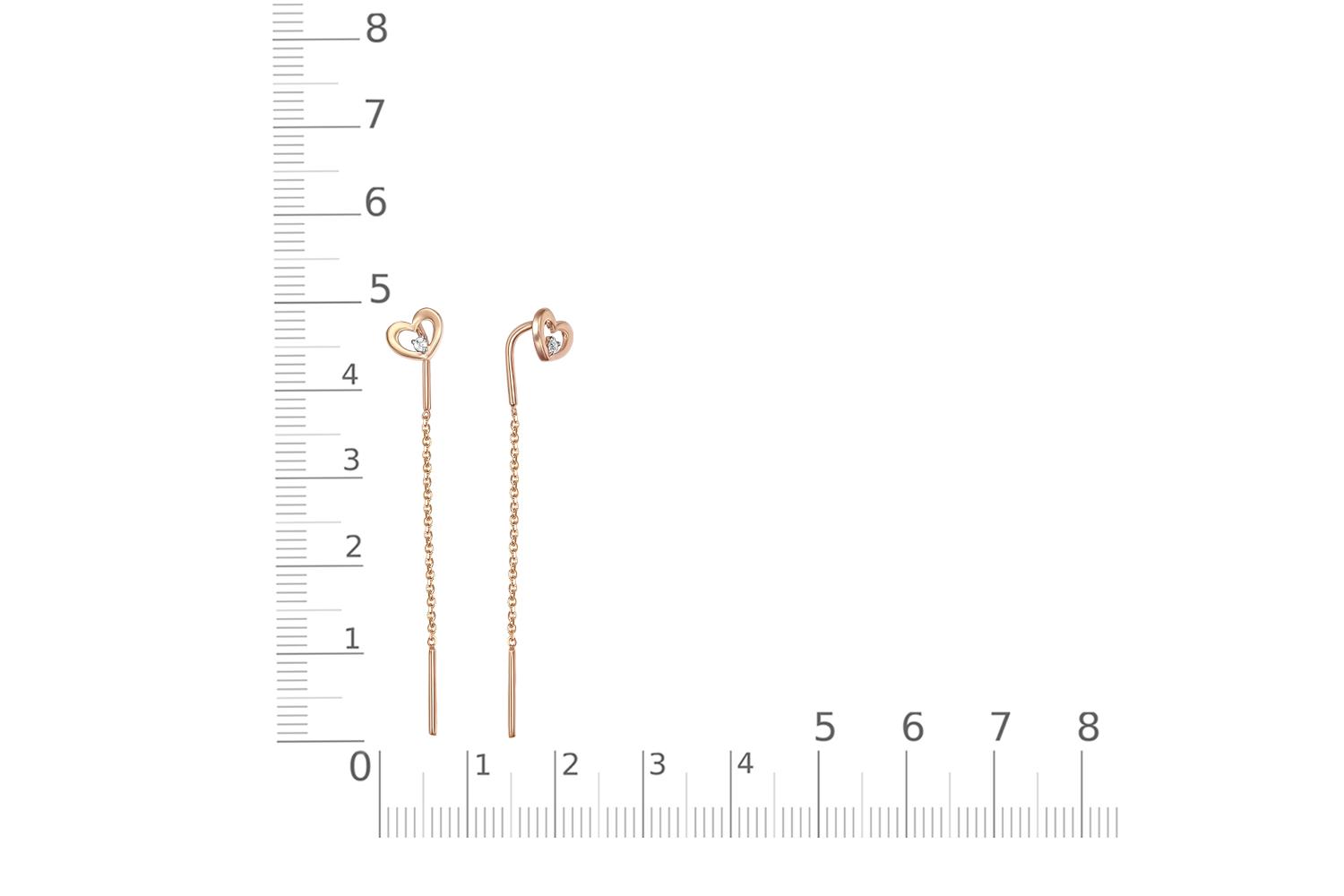 Закажите Серьги-продёвки Сердца из красного золота с 2 фианитами с получением в Москве через курьерскую службу доставки напрямую с нашего производственного склада завода NEWGOLD!