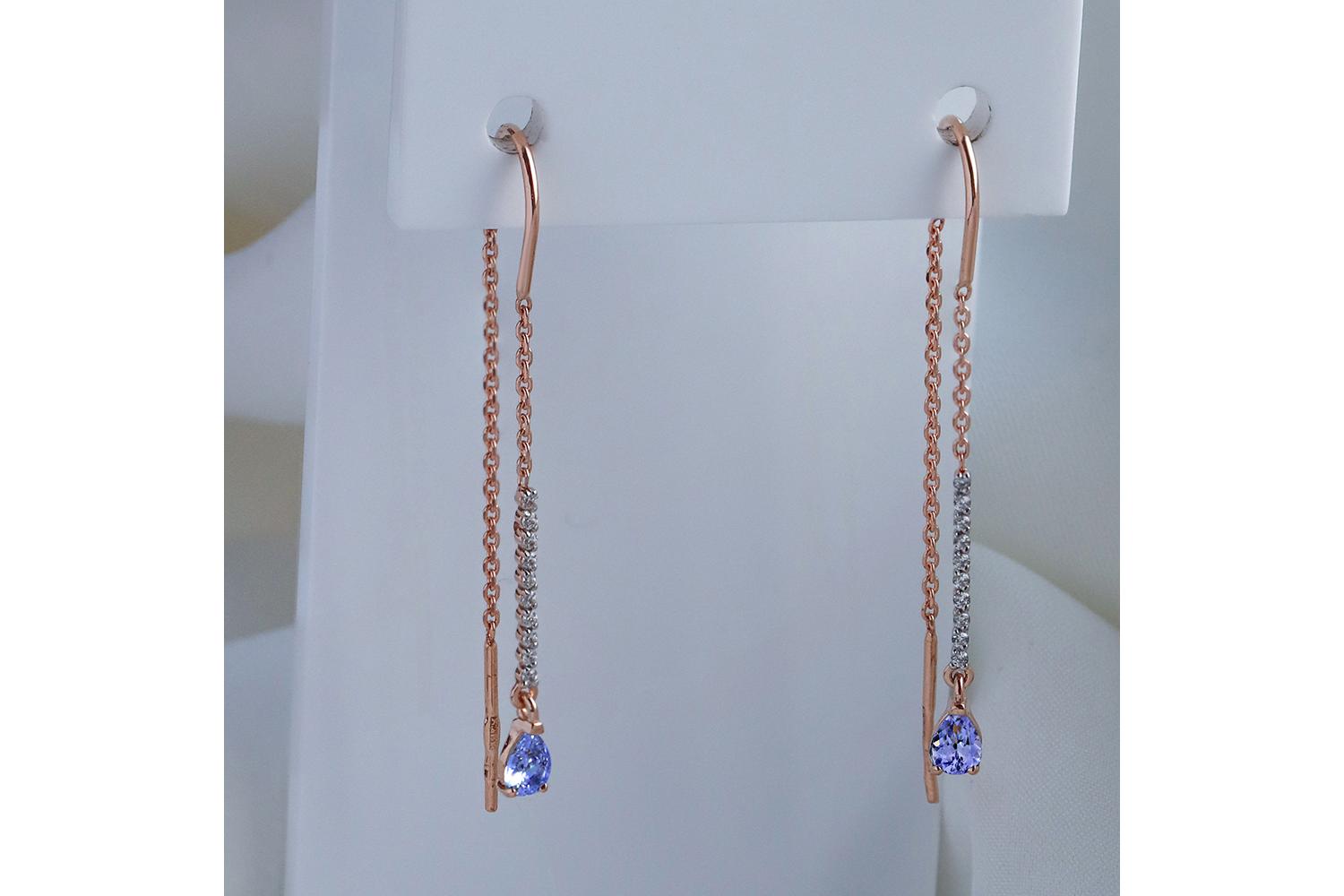 Закажите Серьги-продёвки Дорожки из красного золота с 2 танзанитами и 20 фианитами с получением в Москве через курьерскую службу доставки напрямую с нашего производственного склада завода NEWGOLD!