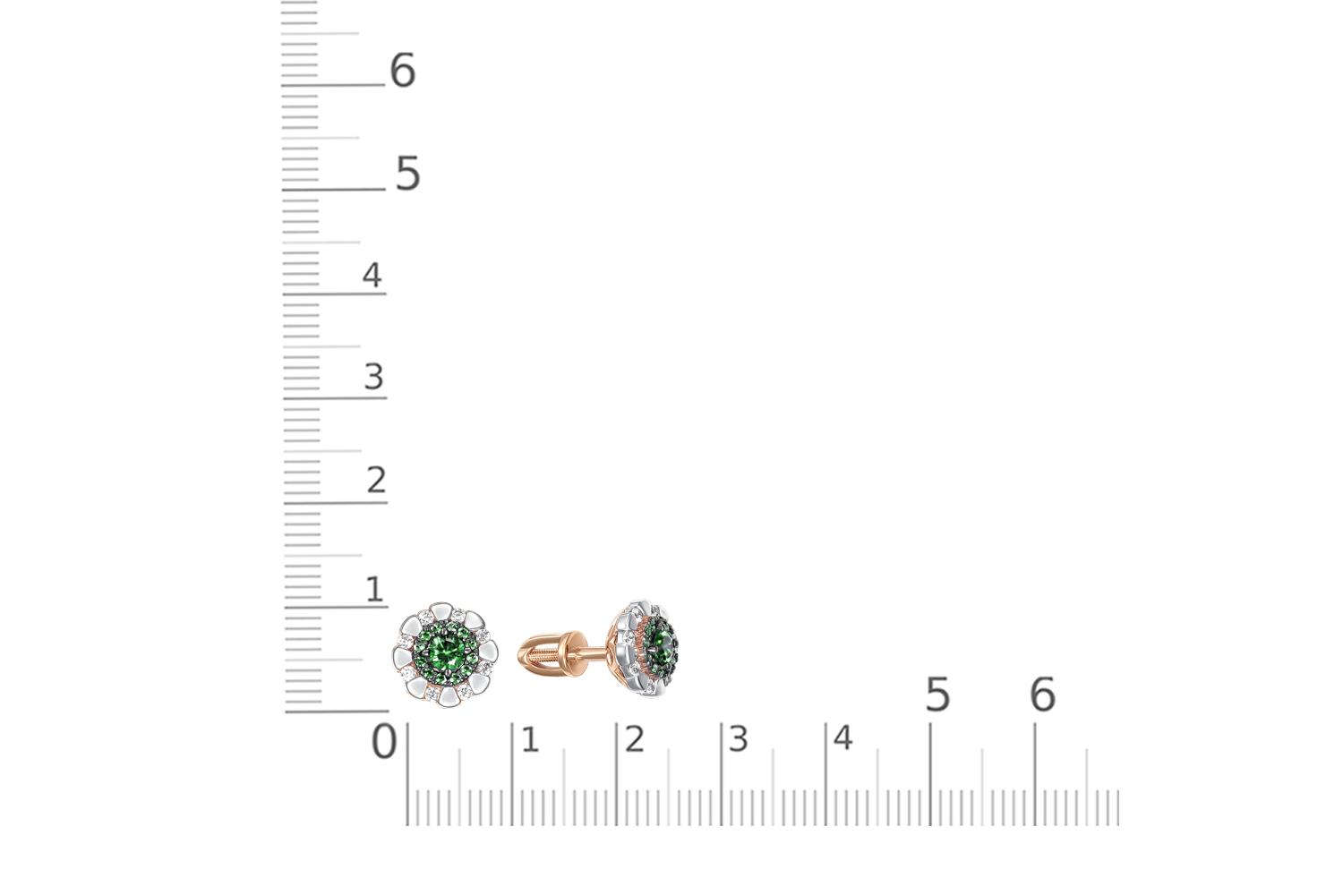 Изумруд натуральный, количество 2 шт., огранка круг, размер 3 мм, цвет 3, чистота 3 ; Бриллиант, количество 16 шт., огранка Кр-17, размер 1,25 мм, цвет 2, чистота 2 ; Бриллиант, количество 24 шт., огранка Кр-17, размер 0,9 мм, цвет 2, чистота 2