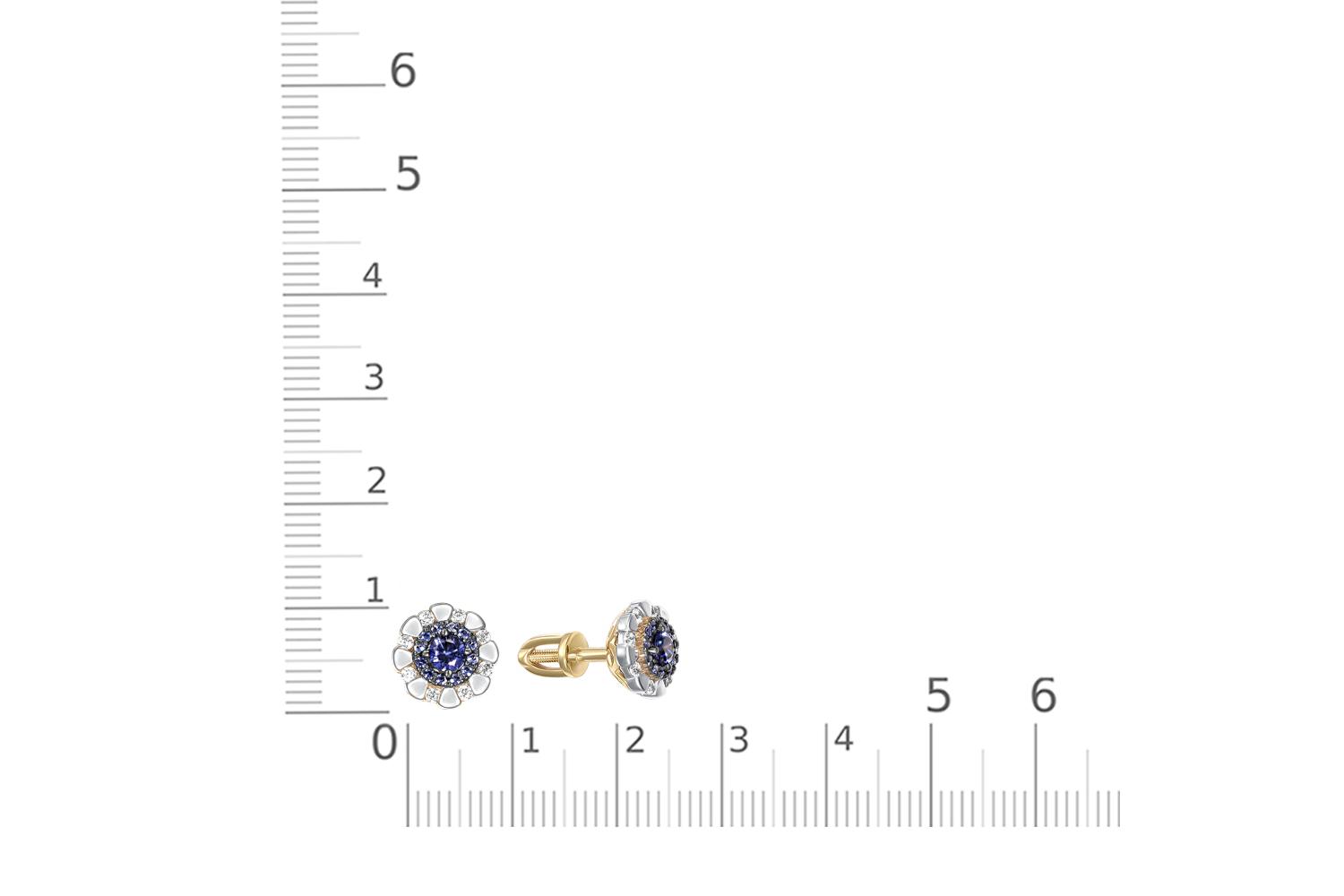 Сапфир натуральный, количество 2 шт., огранка круг, размер 3 мм, цвет 2, чистота 2 ; Бриллиант, количество 16 шт., огранка Кр-17, размер 1,25 мм, цвет 2, чистота 2 ; Бриллиант, количество 24 шт., огранка Кр-17, размер 0,9 мм, цвет 2, чистота 2