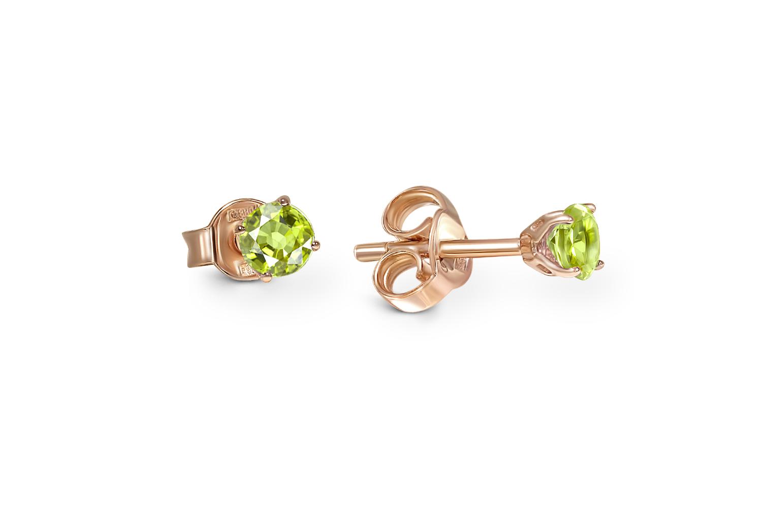 Закажите Серьги-пусеты из красного золота с 2 хризолитами с получением в Москве через курьерскую службу доставки напрямую с нашего производственного склада завода NEWGOLD!