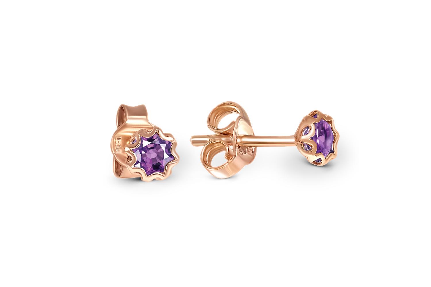 Закажите Серьги-пусеты из красного золота с 2 аметистами с получением в Москве через курьерскую службу доставки напрямую с нашего производственного склада завода NEWGOLD!
