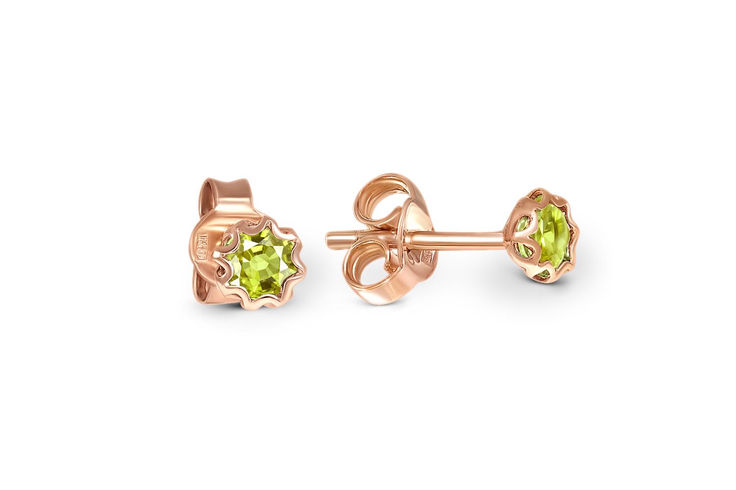 Закажите Серьги-пусеты из красного золота с 2 хризолитами с получением в Москве через курьерскую службу доставки напрямую с нашего производственного склада завода NEWGOLD!