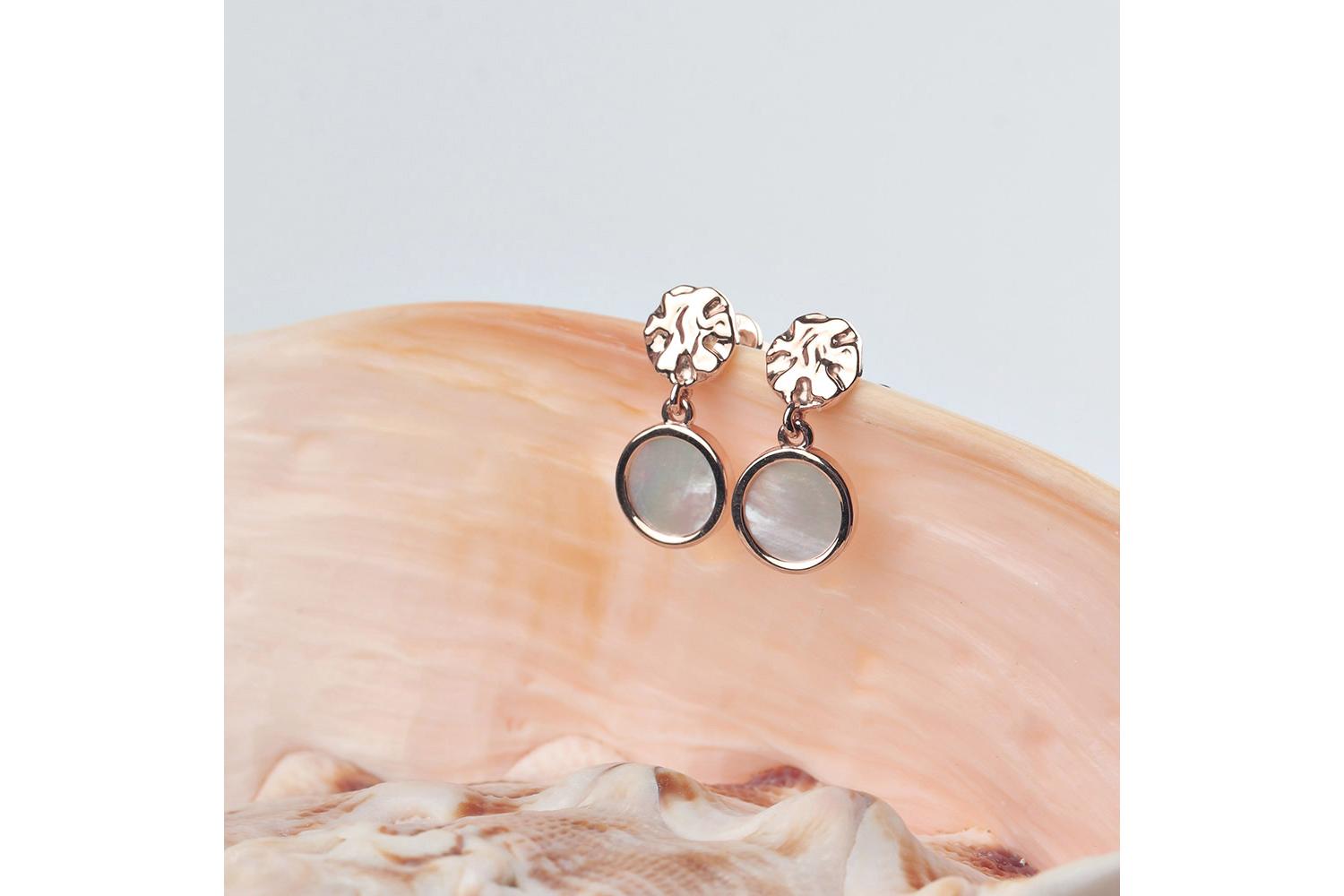 Мастера компании NEWGOLD, приложив всё свое мастерство и искусство, создали для Вас на нашем собственном производстве Серьги-пусеты из красного золота с перламутром.