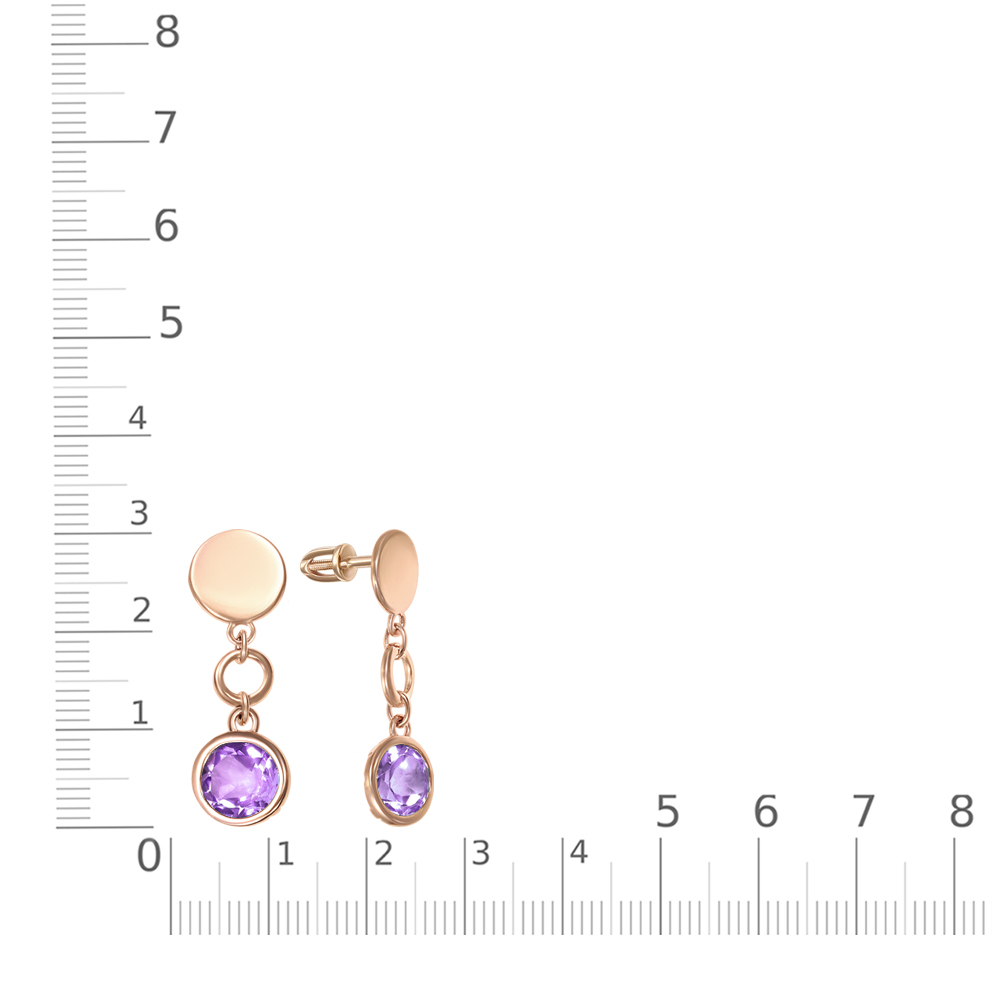 Мастера компании NEWGOLD, приложив всё свое мастерство и искусство, создали для Вас на нашем собственном производстве Серьги-пусеты из красного золота с 2 аметистами.