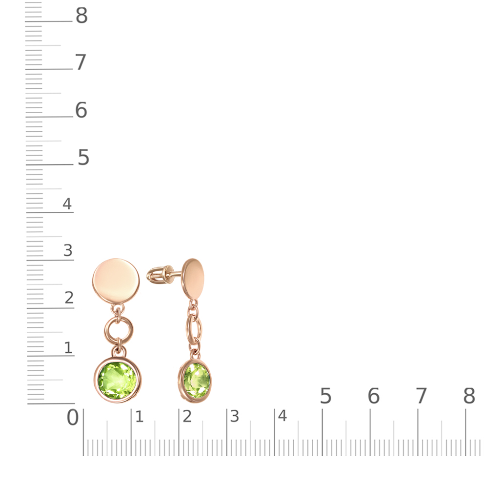 Мастера компании NEWGOLD, приложив всё свое мастерство и искусство, создали для Вас на нашем собственном производстве Серьги-пусеты из красного золота с 2 хризолитами.