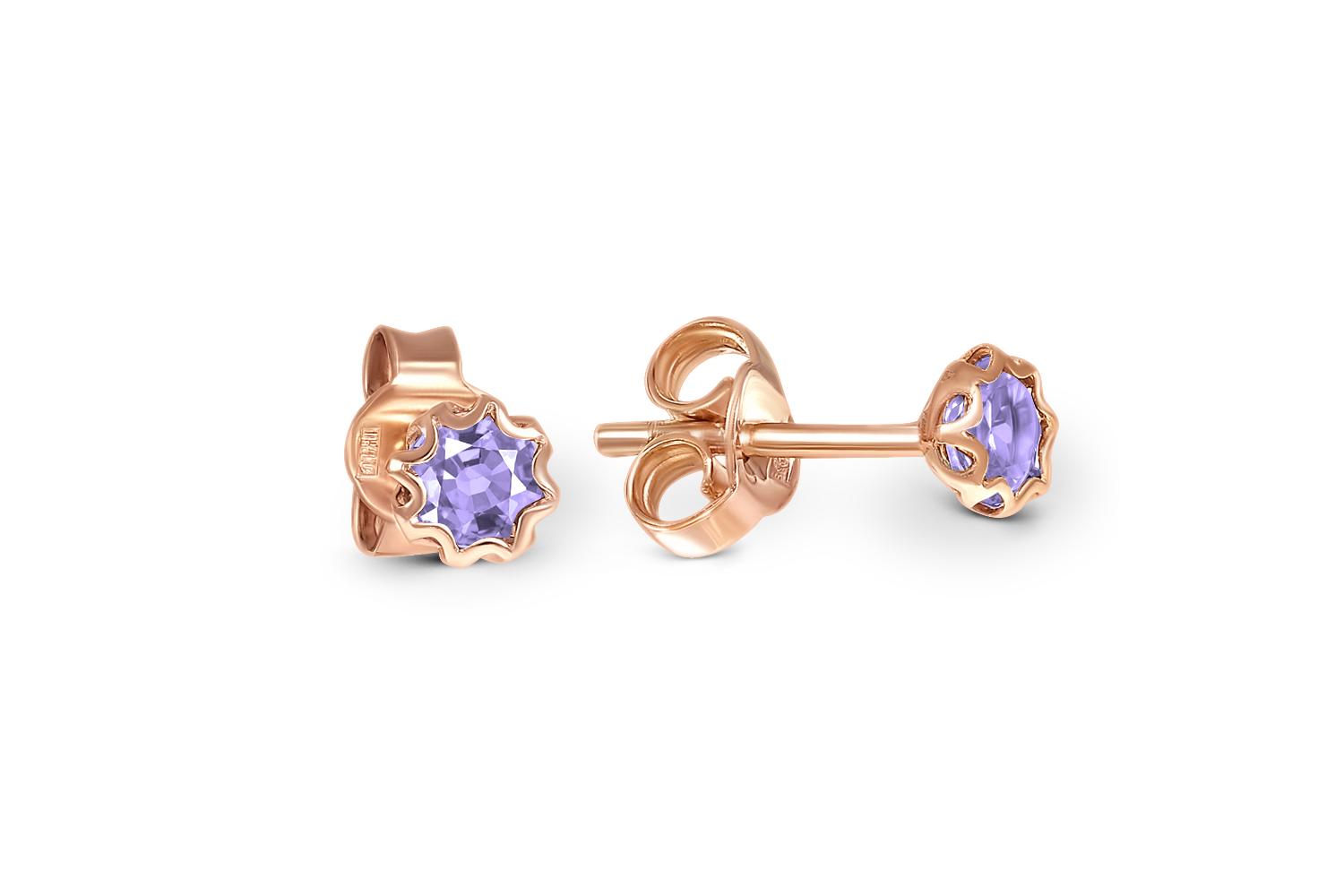 Закажите Серьги-пусеты из красного золота с 2 танзанитами с получением в Москве через курьерскую службу доставки напрямую с нашего производственного склада завода NEWGOLD!