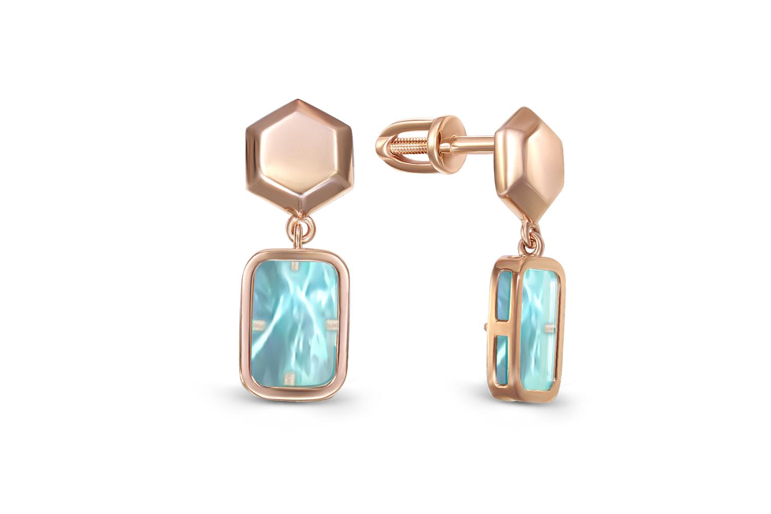 Мастера компании NEWGOLD, приложив всё свое мастерство и искусство, создали для Вас на нашем собственном производстве Серьги-пусеты Прямоугольники из красного золота с 2 наноситалами.
