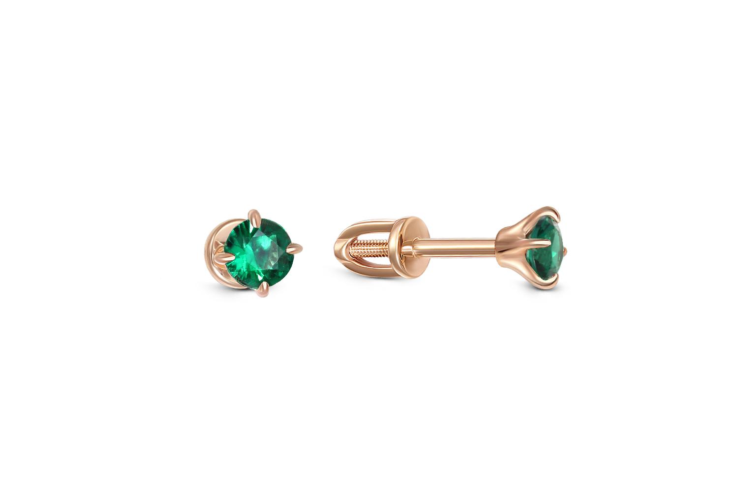 Мастера компании NEWGOLD, приложив всё свое мастерство и искусство, создали для Вас на нашем собственном производстве Серьги-пусеты из красного золота с 2 изумрудами.