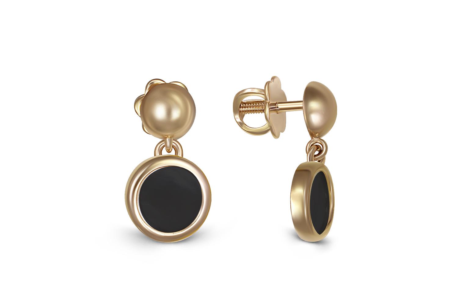 Мастера компании NEWGOLD, приложив всё свое мастерство и искусство, создали для Вас на нашем собственном производстве Детские серьги-пусеты из жёлтого золота с 2 ониксами.