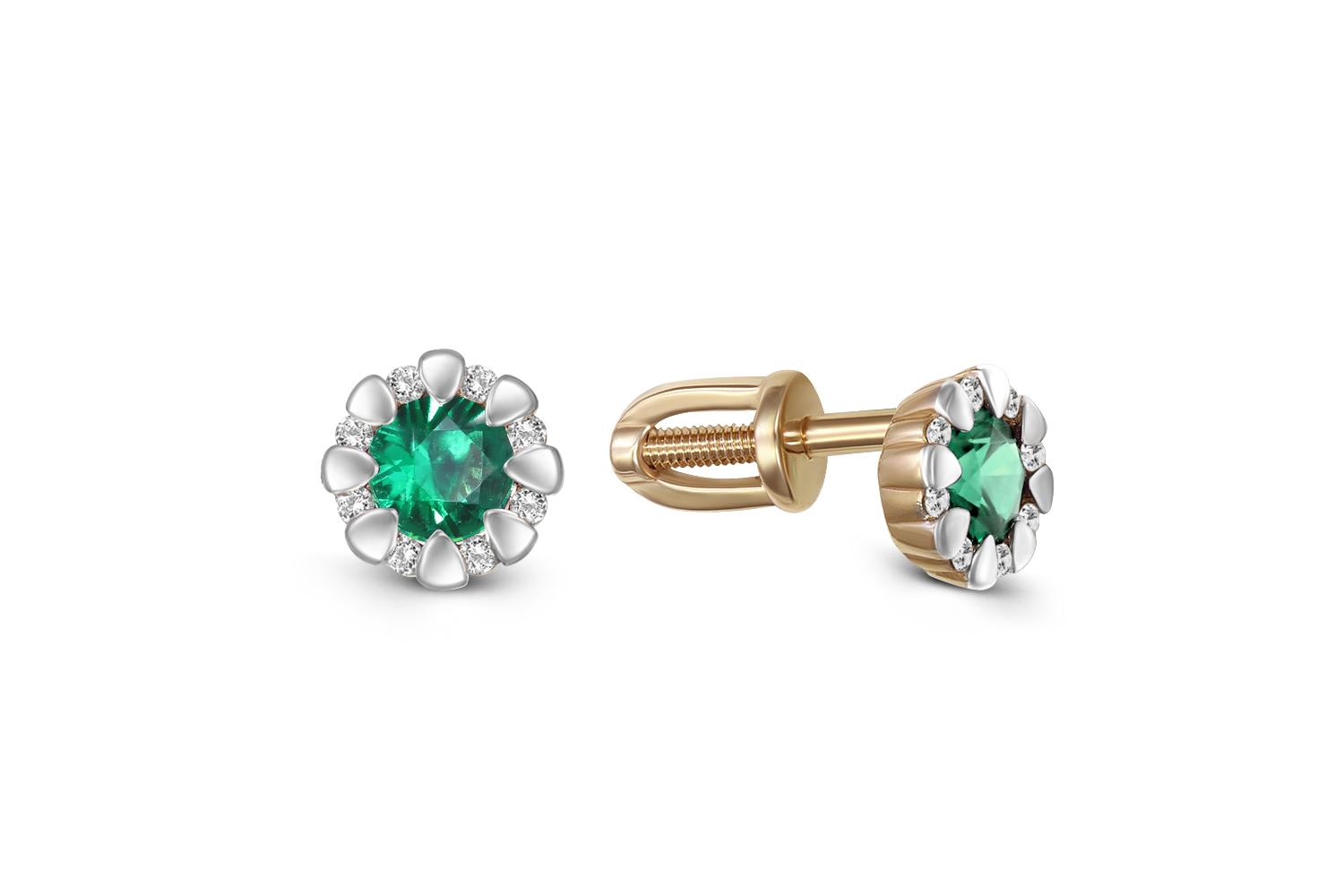 Мастера компании NEWGOLD, приложив всё свое мастерство и искусство, создали для Вас на нашем собственном производстве Серьги-пусеты из жёлтого золота с 2 изумрудами и 16 бриллиантами.