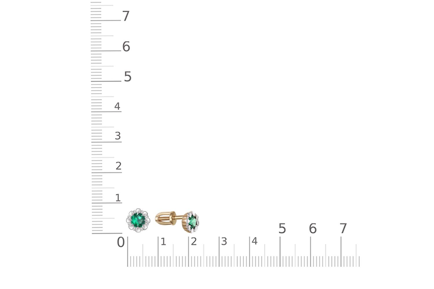 Изумруд Гт искусственный, количество 2 шт., огранка круг, размер 4 мм ; Бриллиант, количество 16 шт., огранка Кр-57, размер 1,1 мм, цвет 4, чистота 5