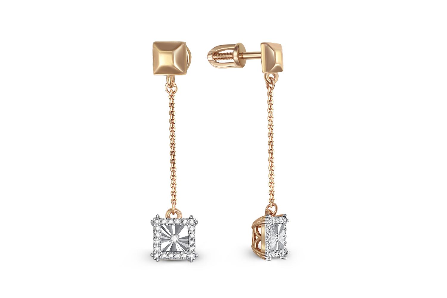 Мастера компании NEWGOLD, приложив всё свое мастерство и искусство, создали для Вас на нашем собственном производстве Серьги-пусеты Квадраты из жёлтого золота с 42 бриллиантами.