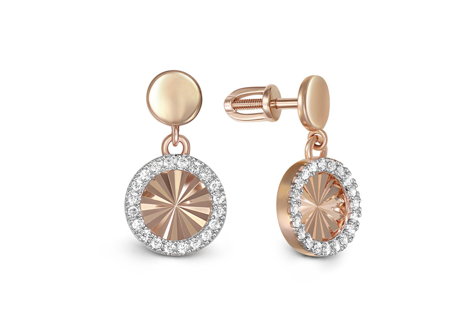 Мастера компании NEWGOLD, приложив всё свое мастерство и искусство, создали для Вас на нашем собственном производстве Серьги-пусеты из красного золота с 40 фианитами.