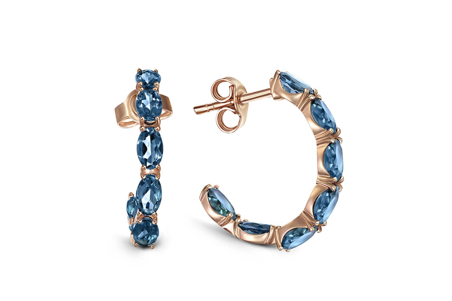 Мастера компании NEWGOLD, приложив всё свое мастерство и искусство, создали для Вас на нашем собственном производстве Серьги-пусеты из красного золота с 14 топазами лондон.