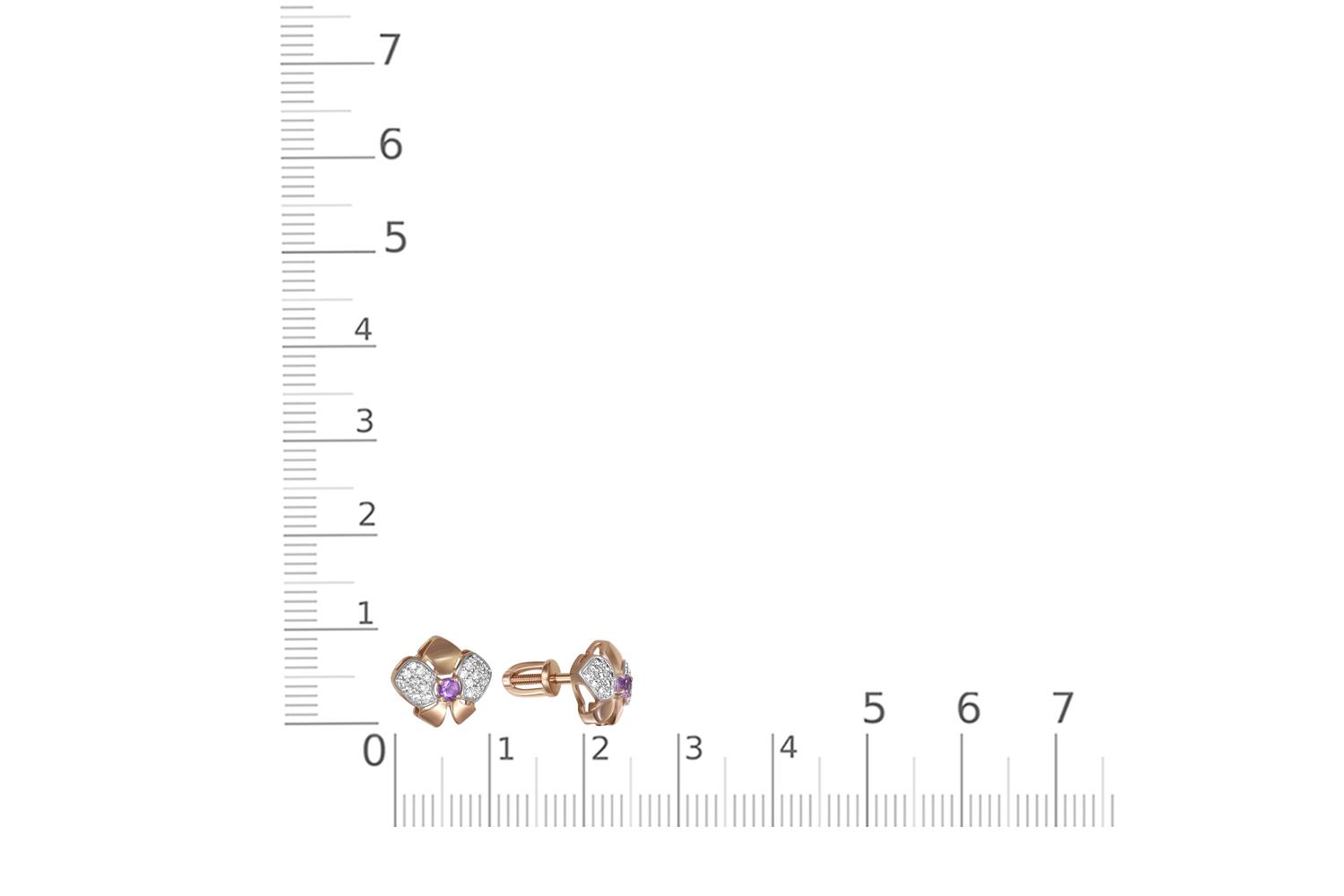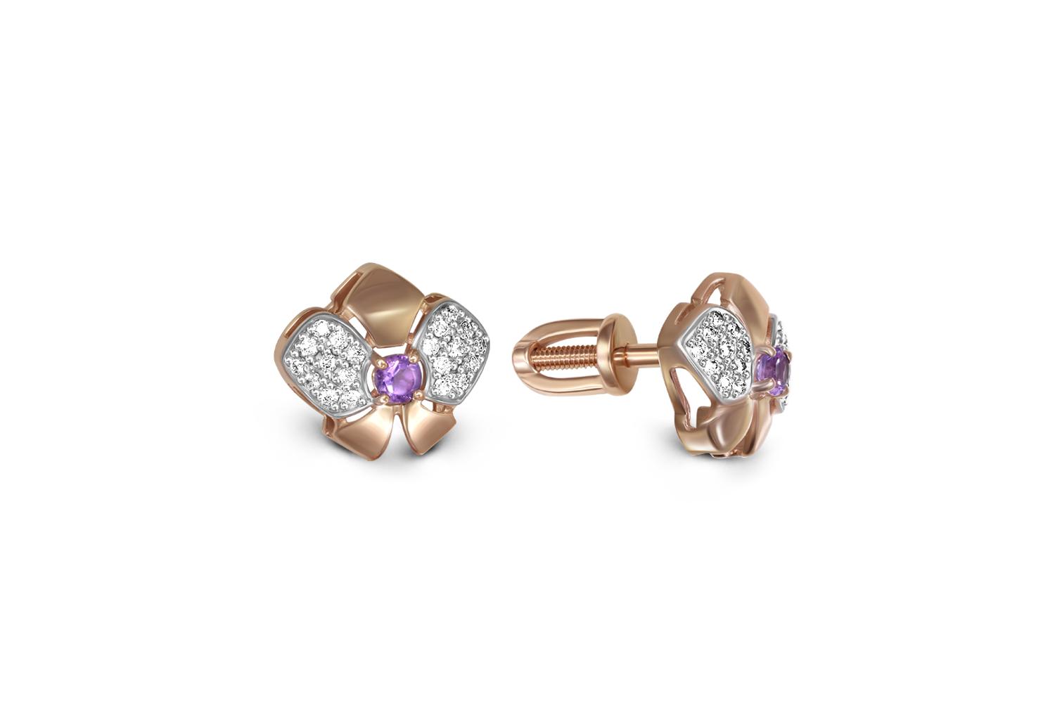 Мастера компании NEWGOLD, приложив всё свое мастерство и искусство, создали для Вас на нашем собственном производстве Серьги-пусеты Цветы из красного золота с 2 аметистами и 40 фианитами.