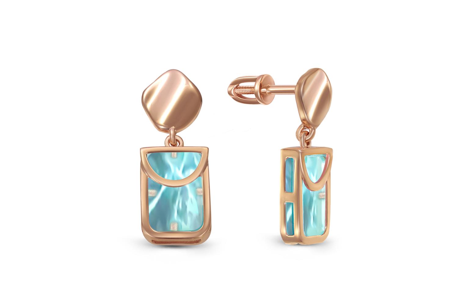 Мастера компании NEWGOLD, приложив всё свое мастерство и искусство, создали для Вас на нашем собственном производстве Серьги-пусеты Прямоугольники из красного золота с 2 наноситалами.