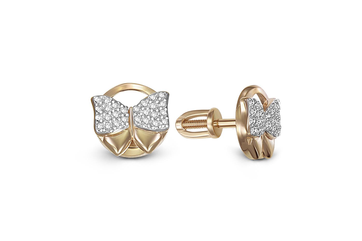 Мастера компании NEWGOLD, приложив всё свое мастерство и искусство, создали для Вас на нашем собственном производстве Серьги-пусеты Бабочки из жёлтого золота с 52 фианитами.