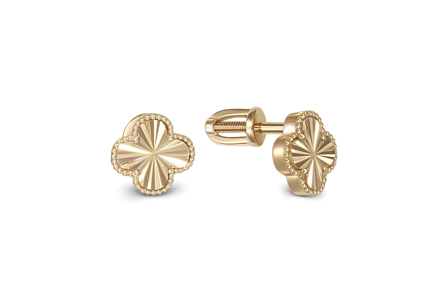 Мастера компании NEWGOLD, приложив всё свое мастерство и искусство, создали для Вас на нашем собственном производстве Серьги-пусеты Клевер из жёлтого золота без вставок.
