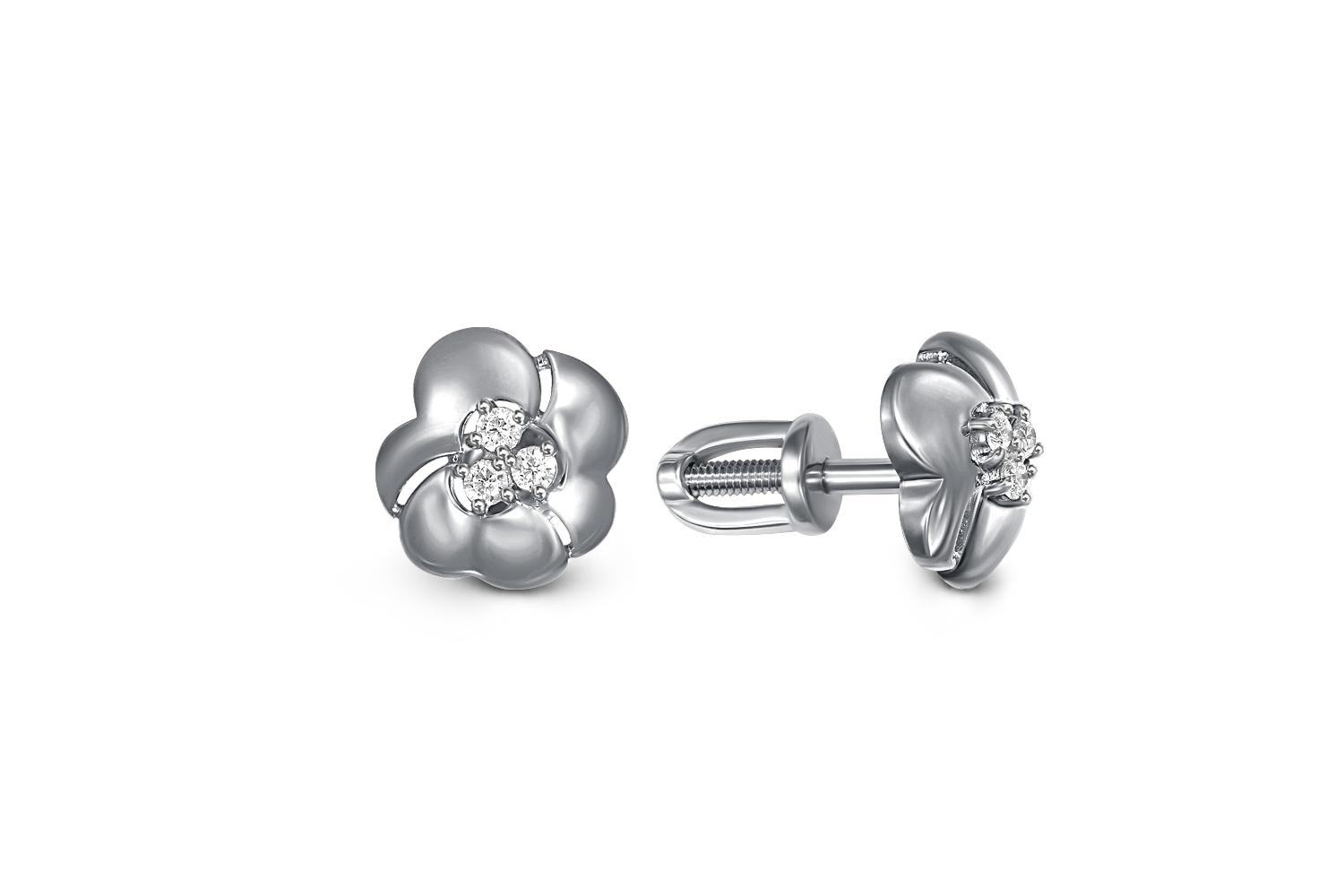 Мастера компании NEWGOLD, приложив всё свое мастерство и искусство, создали для Вас на нашем собственном производстве Серьги-пусеты Цветы из белого золота с 6 фианитами.