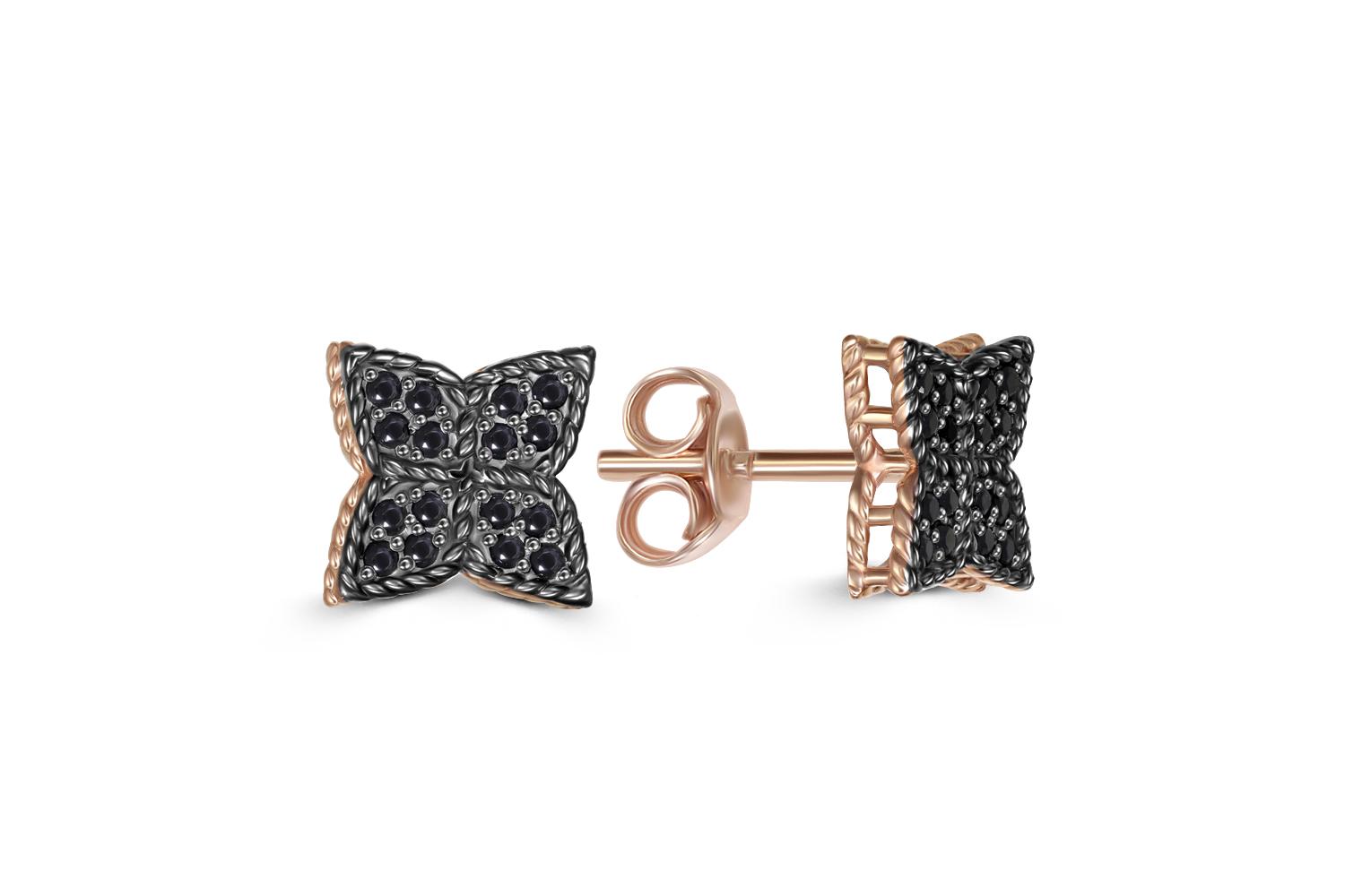 Мастера компании NEWGOLD, приложив всё свое мастерство и искусство, создали для Вас на нашем собственном производстве Серьги-пусеты Цветы из красного золота с 32 фианитами.