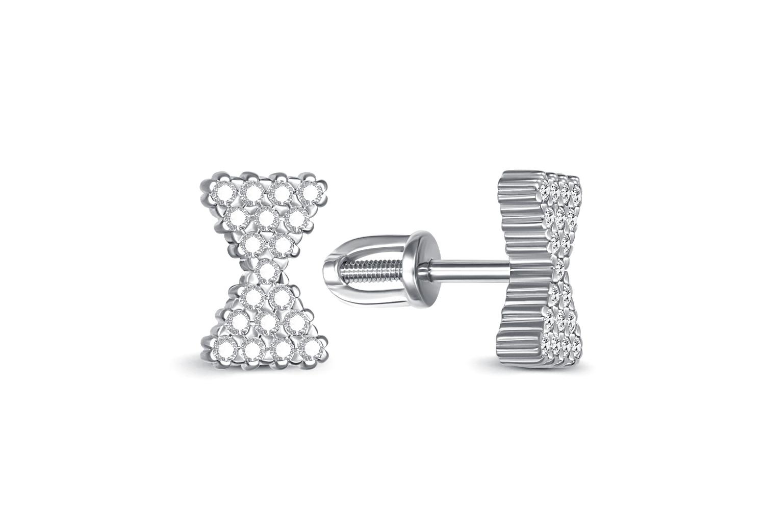 Мастера компании NEWGOLD, приложив всё свое мастерство и искусство, создали для Вас на нашем собственном производстве Серьги-пусеты Бантики из белого золота с 38 бриллиантами.