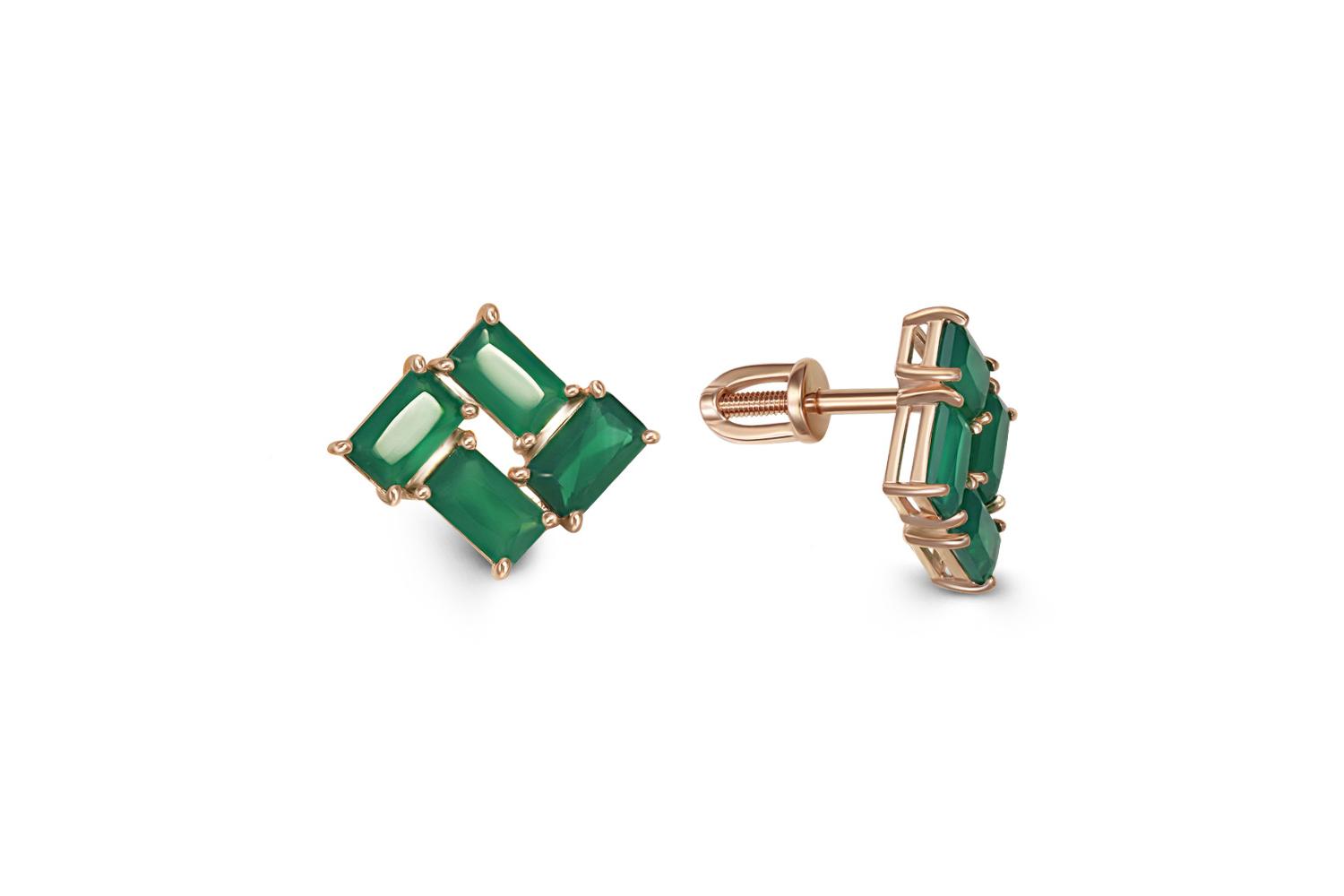 Мастера компании NEWGOLD, приложив всё свое мастерство и искусство, создали для Вас на нашем собственном производстве Серьги-пусеты из красного золота с 8 агатами.