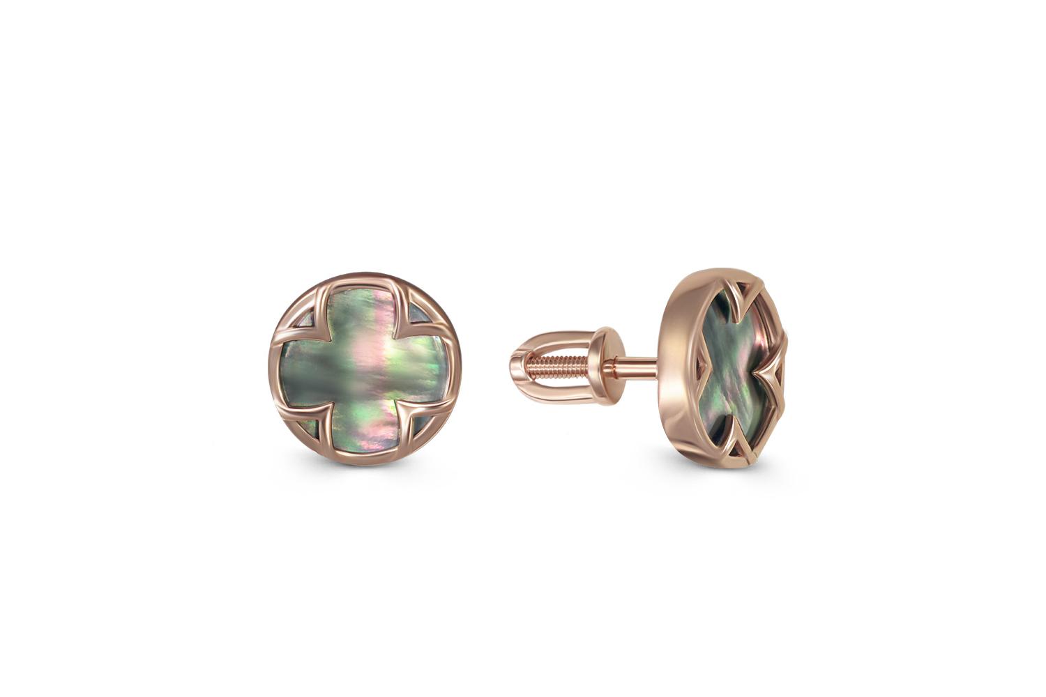 Мастера компании NEWGOLD, приложив всё свое мастерство и искусство, создали для Вас на нашем собственном производстве Серьги-пусеты Клевер из красного золота с перламутром.