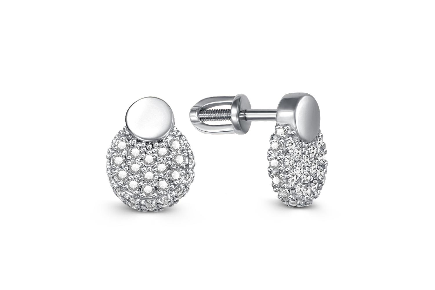 Мастера компании NEWGOLD, приложив всё свое мастерство и искусство, создали для Вас на нашем собственном производстве Серьги-пусеты из белого золота с 56 фианитами.