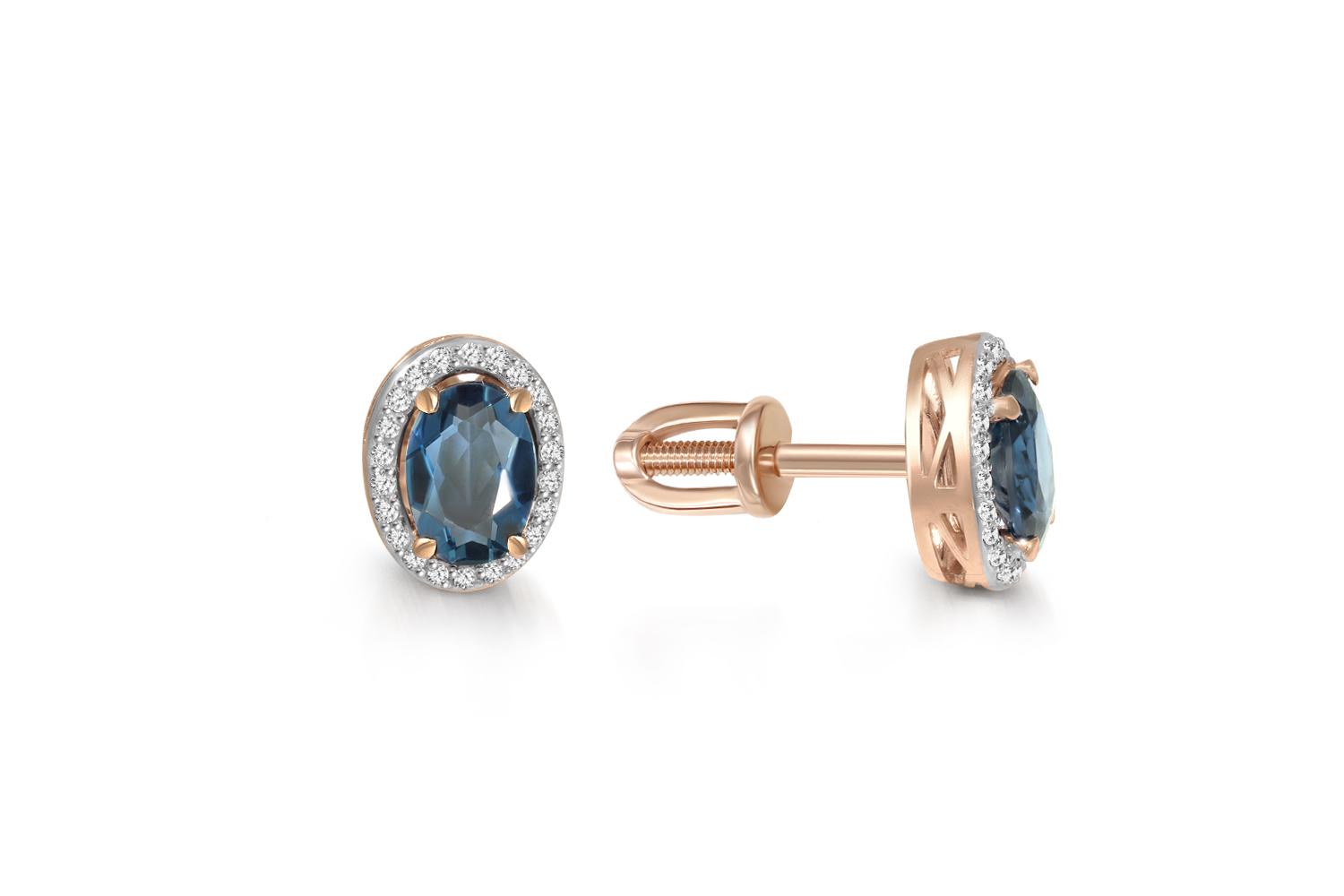 Мастера компании NEWGOLD, приложив всё свое мастерство и искусство, создали для Вас на нашем собственном производстве Серьги-пусеты из красного золота с 2 топазами лондон и 44 фианитами.