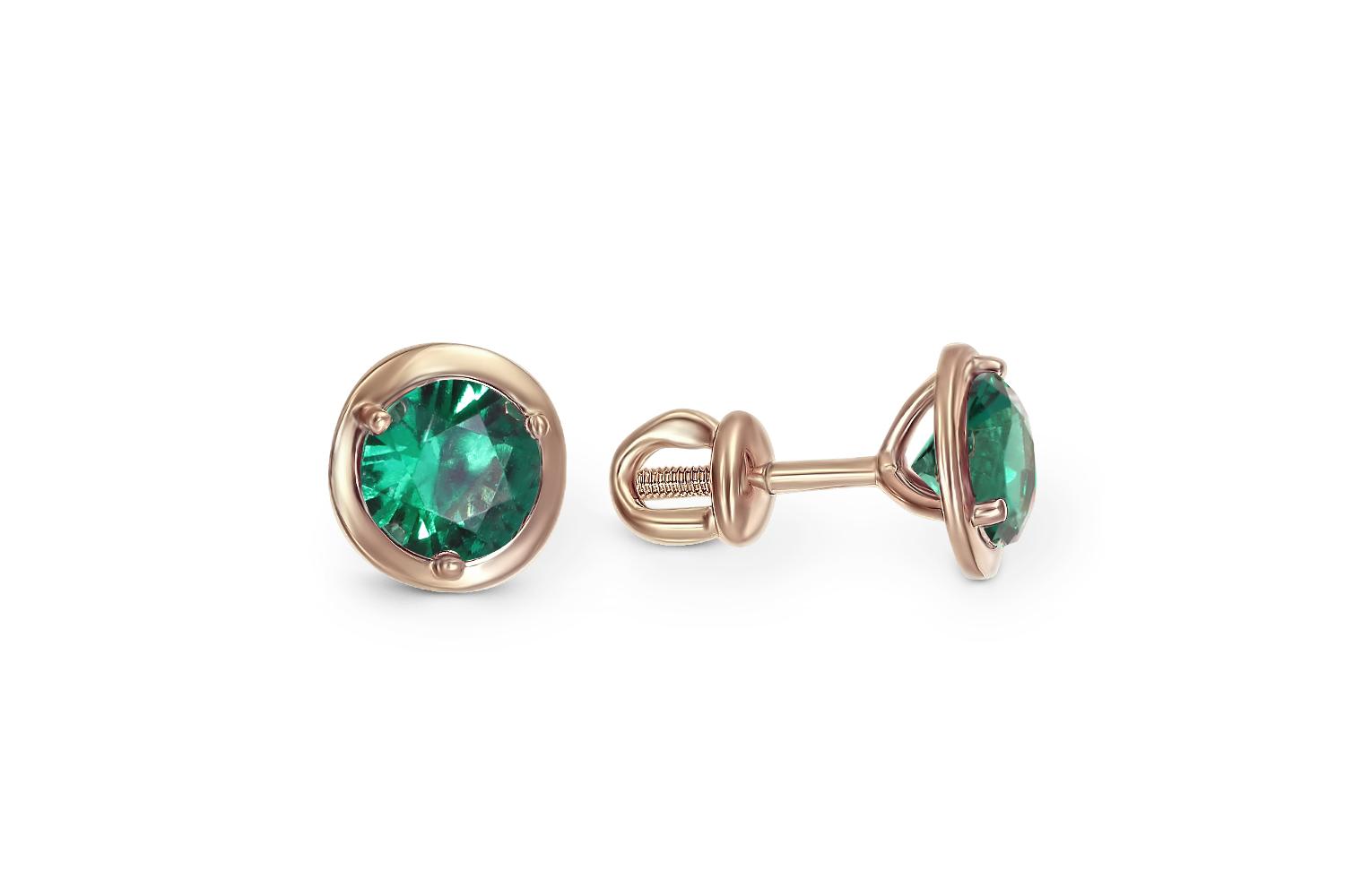 Закажите Серьги-пусеты из красного золота с 2 изумрудами с получением в Москве через курьерскую службу доставки напрямую с нашего производственного склада завода NEWGOLD!