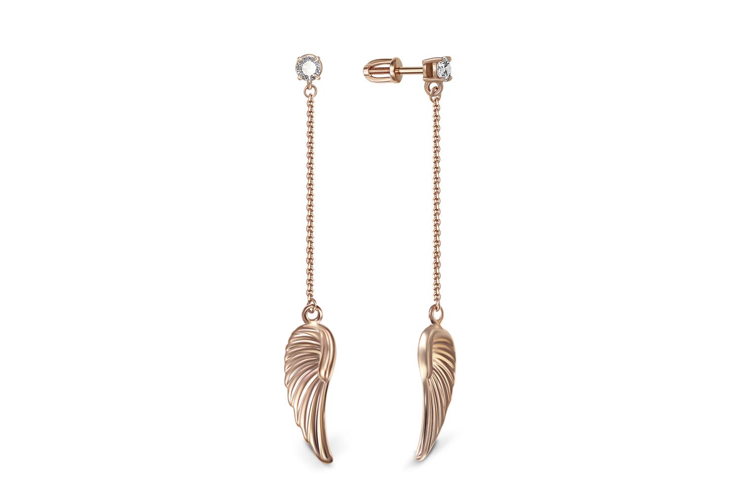 Мастера компании NEWGOLD, приложив всё свое мастерство и искусство, создали для Вас на нашем собственном производстве Серьги-пусеты Крылья из красного золота с 2 бриллиантами.