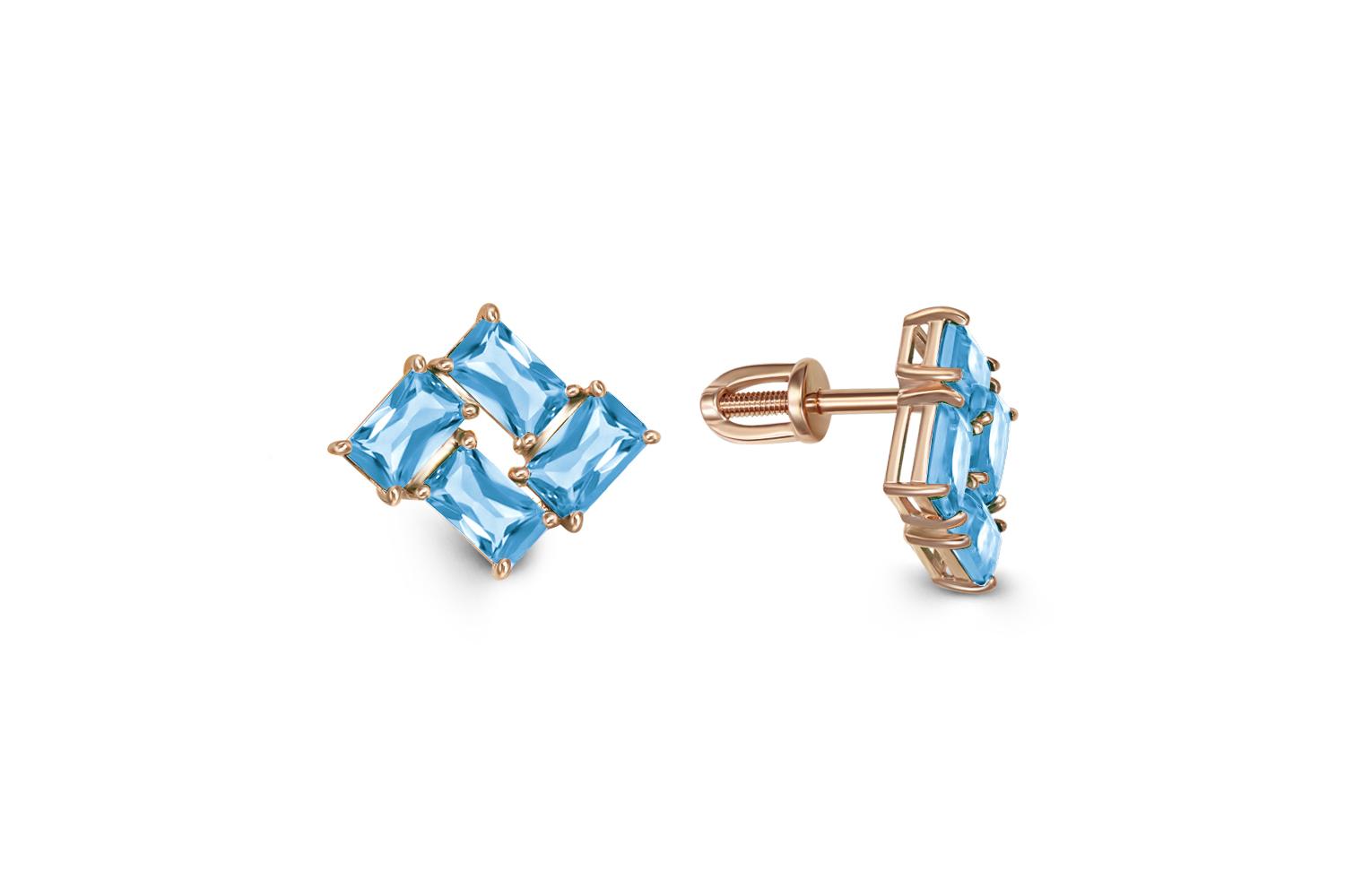 Мастера компании NEWGOLD, приложив всё свое мастерство и искусство, создали для Вас на нашем собственном производстве Серьги-пусеты из красного золота с 8 топазами swiss.