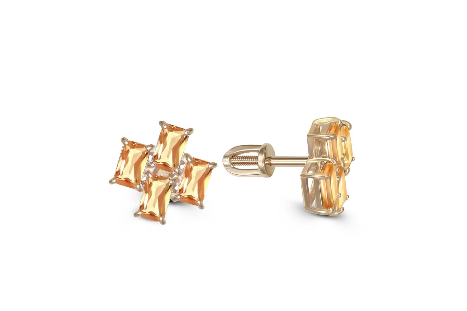 Мастера компании NEWGOLD, приложив всё свое мастерство и искусство, создали для Вас на нашем собственном производстве Серьги-пусеты из жёлтого золота с 8 цитринами.