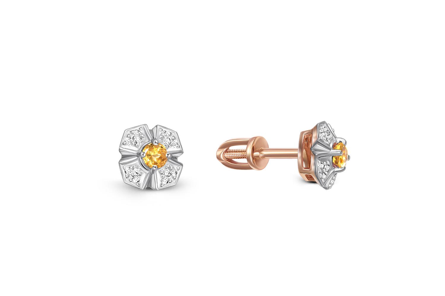 Мастера компании NEWGOLD, приложив всё свое мастерство и искусство, создали для Вас на нашем собственном производстве Серьги-пусеты Цветы из красного золота с 2 цитринами и 24 фианитами.