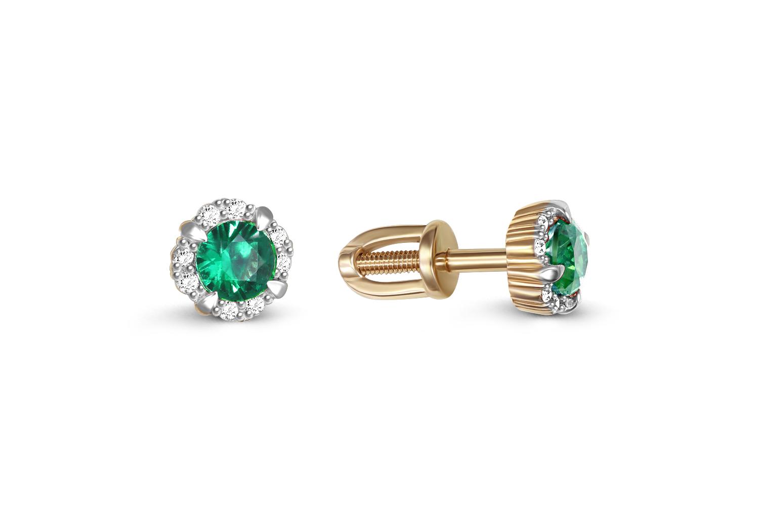 Мастера компании NEWGOLD, приложив всё свое мастерство и искусство, создали для Вас на нашем собственном производстве Серьги-пусеты из жёлтого золота с 2 изумрудами и 16 бриллиантами.