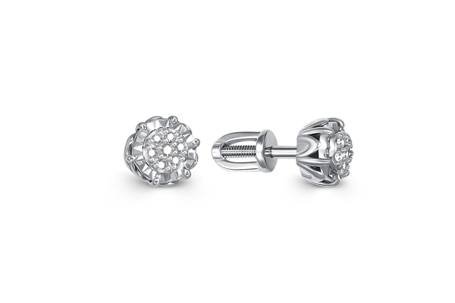 Мастера компании NEWGOLD, приложив всё свое мастерство и искусство, создали для Вас на нашем собственном производстве Серьги-пусеты Малинки из белого золота с 14 бриллиантами.