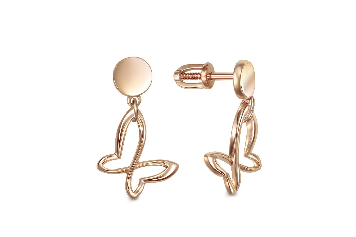 Мастера компании NEWGOLD, приложив всё свое мастерство и искусство, создали для Вас на нашем собственном производстве Серьги-пусеты Бабочки из красного золота без вставок.