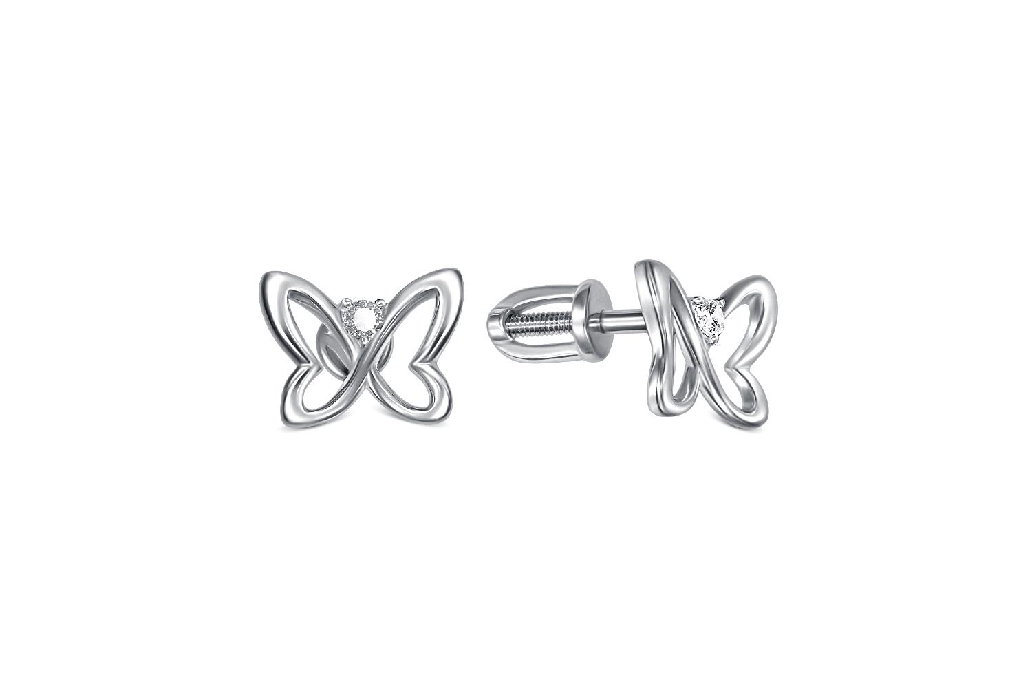 Мастера компании NEWGOLD, приложив всё свое мастерство и искусство, создали для Вас на нашем собственном производстве Серьги-пусеты Бабочки из белого золота с 2 фианитами.