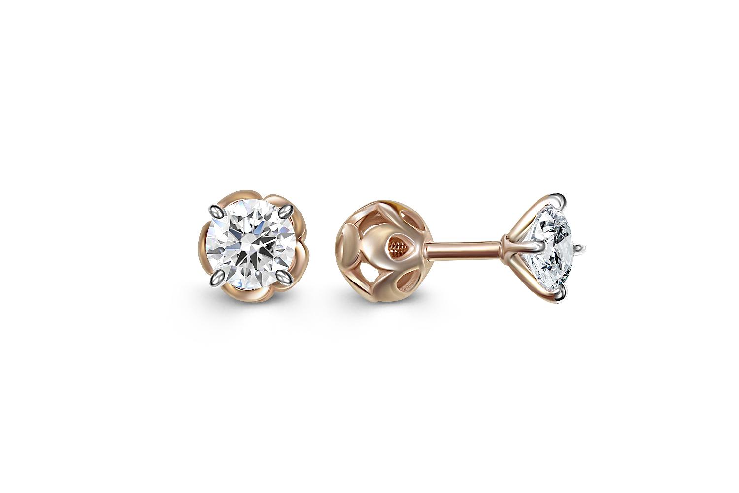 Мастера компании NEWGOLD, приложив всё свое мастерство и искусство, создали для Вас на нашем собственном производстве Серьги-пусеты из красного золота с 2 фианитами.