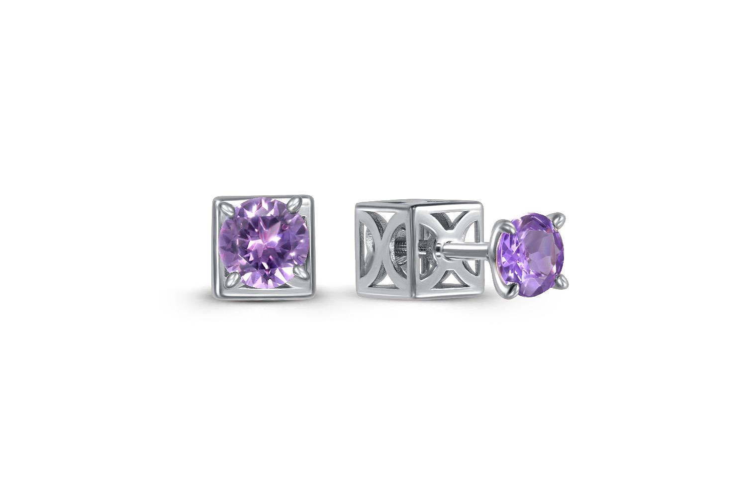 Мастера компании NEWGOLD, приложив всё свое мастерство и искусство, создали для Вас на нашем собственном производстве Серьги-пусеты из белого золота с 2 аметистами.
