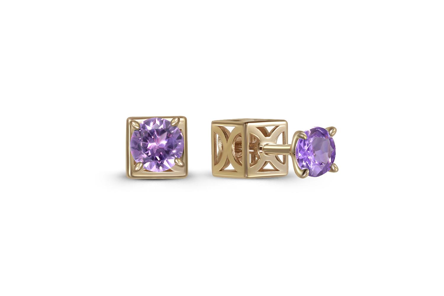 Мастера компании NEWGOLD, приложив всё свое мастерство и искусство, создали для Вас на нашем собственном производстве Серьги-пусеты из жёлтого золота с 2 аметистами.