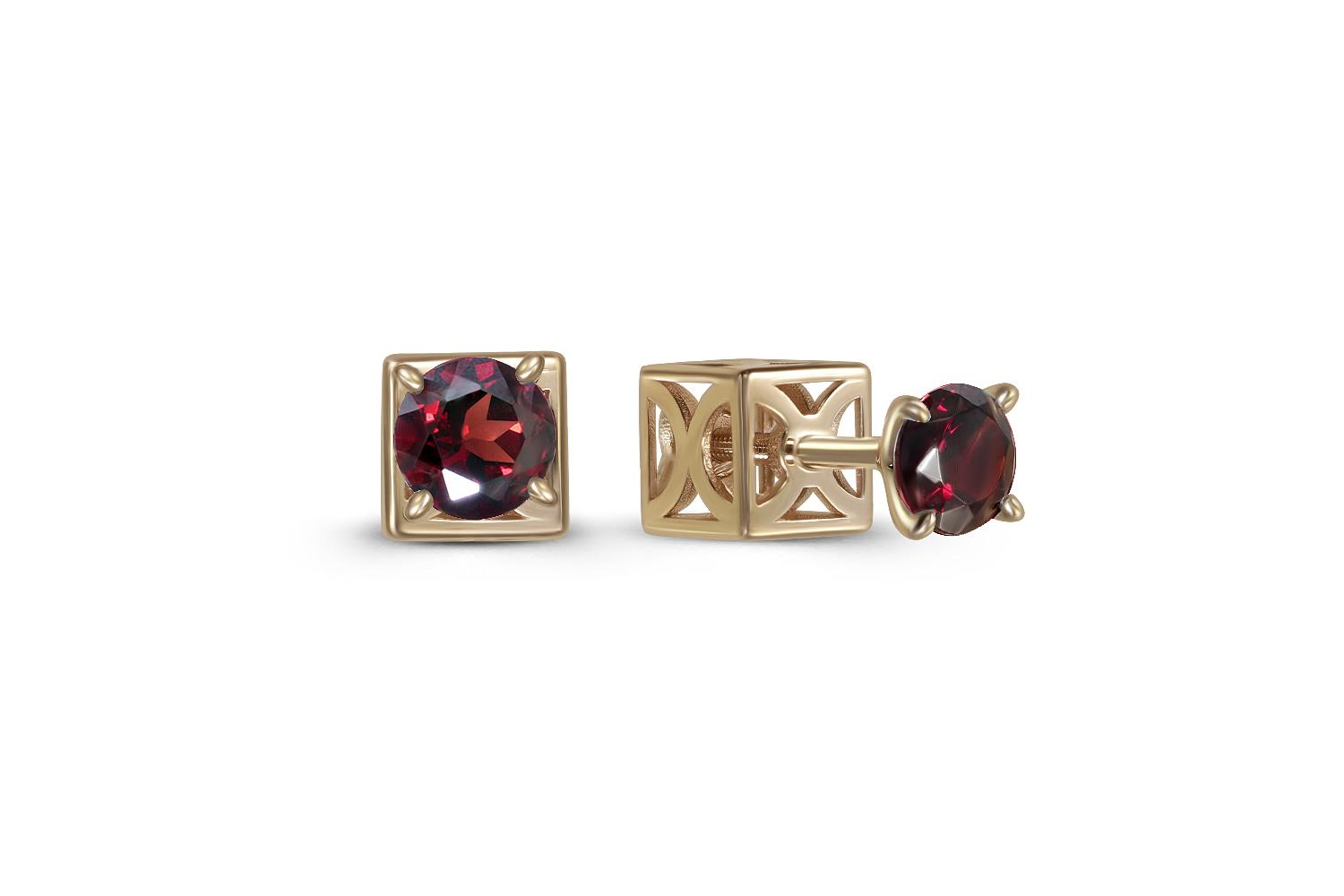Мастера компании NEWGOLD, приложив всё свое мастерство и искусство, создали для Вас на нашем собственном производстве Серьги-пусеты из жёлтого золота с 2 гранатами.
