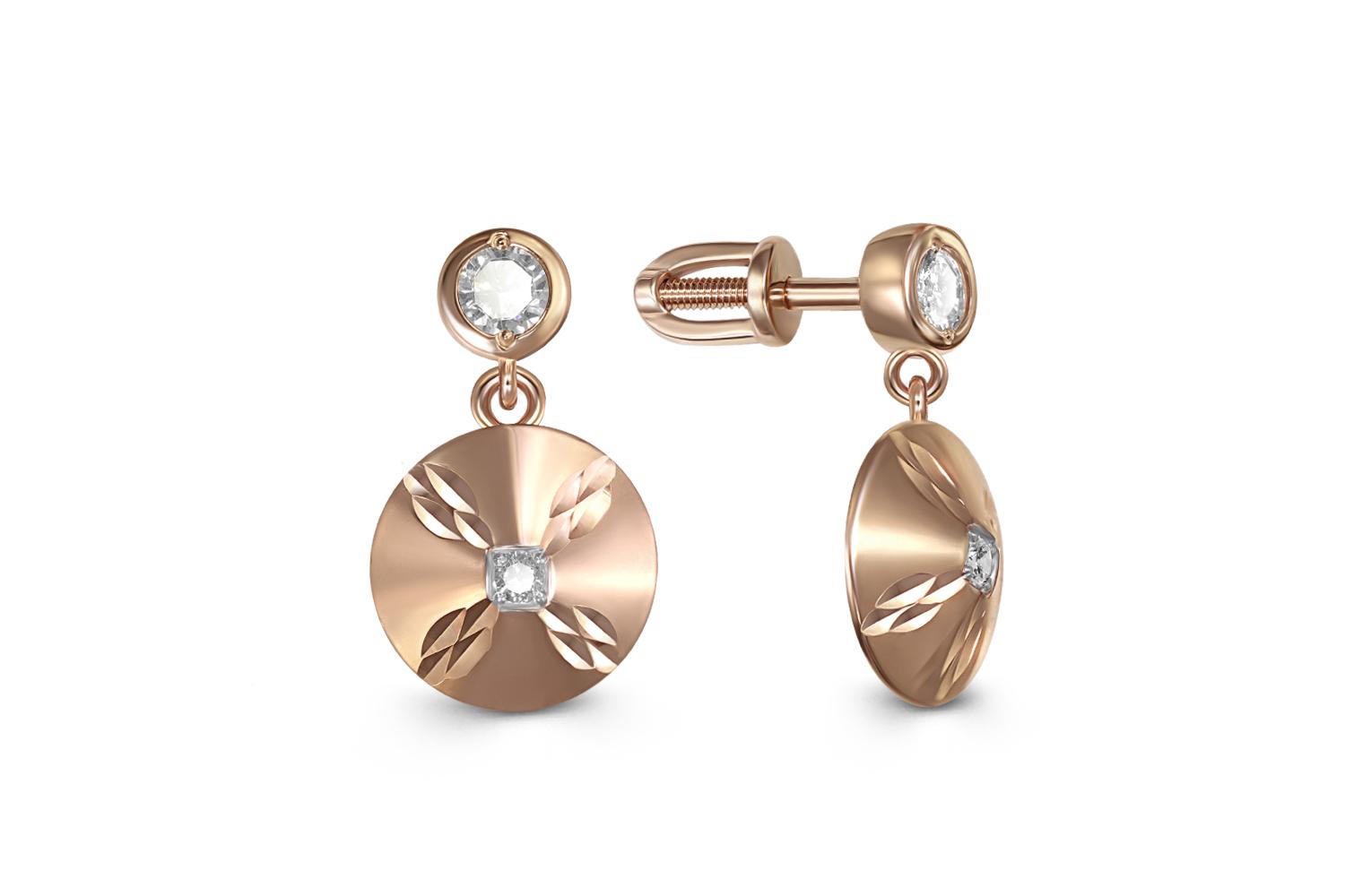 Мастера компании NEWGOLD, приложив всё свое мастерство и искусство, создали для Вас на нашем собственном производстве Серьги-пусеты из красного золота с 4 фианитами.