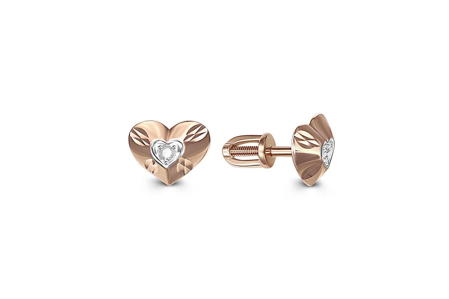 Мастера компании NEWGOLD, приложив всё свое мастерство и искусство, создали для Вас на нашем собственном производстве Серьги-пусеты Сердца из красного золота с 2 фианитами.