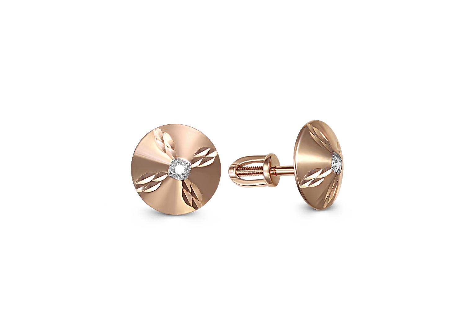 Мастера компании NEWGOLD, приложив всё свое мастерство и искусство, создали для Вас на нашем собственном производстве Серьги-пусеты из красного золота с 2 бриллиантами.